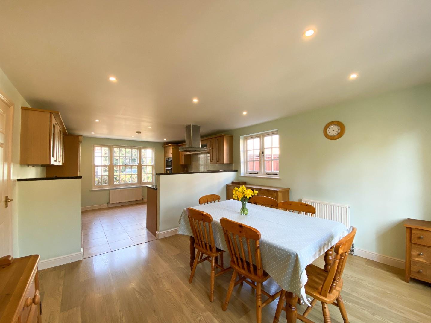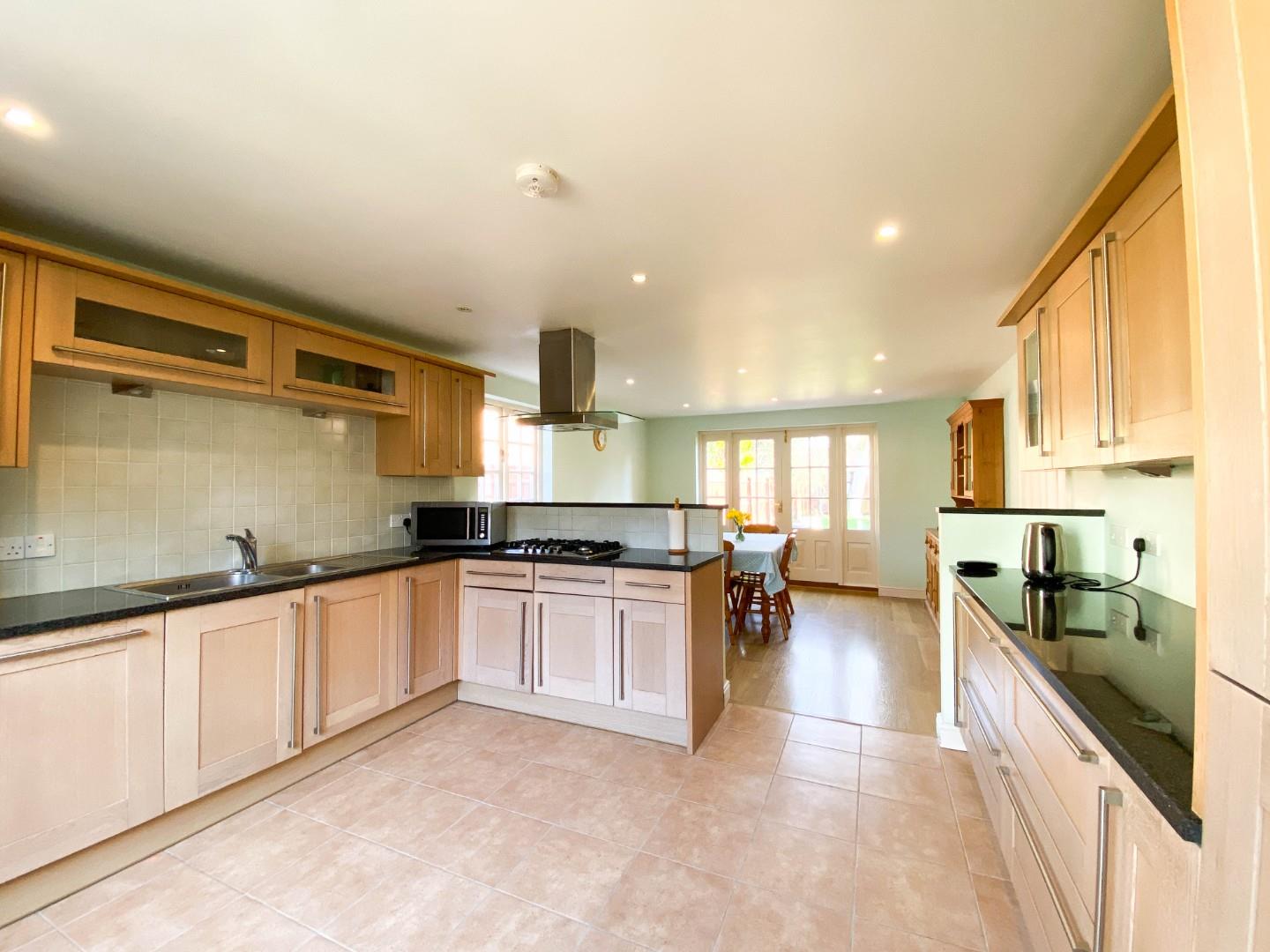 The accommodation comprises a large welcoming reception hall with stairs to first floor accommodation, storage cupboard under and a cloakroom/WC just off. The kitchen/dining/family room is a generously proportioned dual aspect room with French doors to the garden. The kitchen area is fitted with attractive cabinetry, ample granite work surfaces with inset double sink unit with mixer tap and drainer plus a range of integrated appliances which include a five ring gas hob, double oven, extractor, double fridge, double freezer and dishwasher. The kitchen is complemented by a utility room with matching cabinetry, fitted work surfaces with single sink, drainer and space for the usual white goods plus a wall mounted gas fired central heating boiler. There are two reception rooms, a lounge with a feature open fireplace and French doors to the garden and a playroom/sitting room.