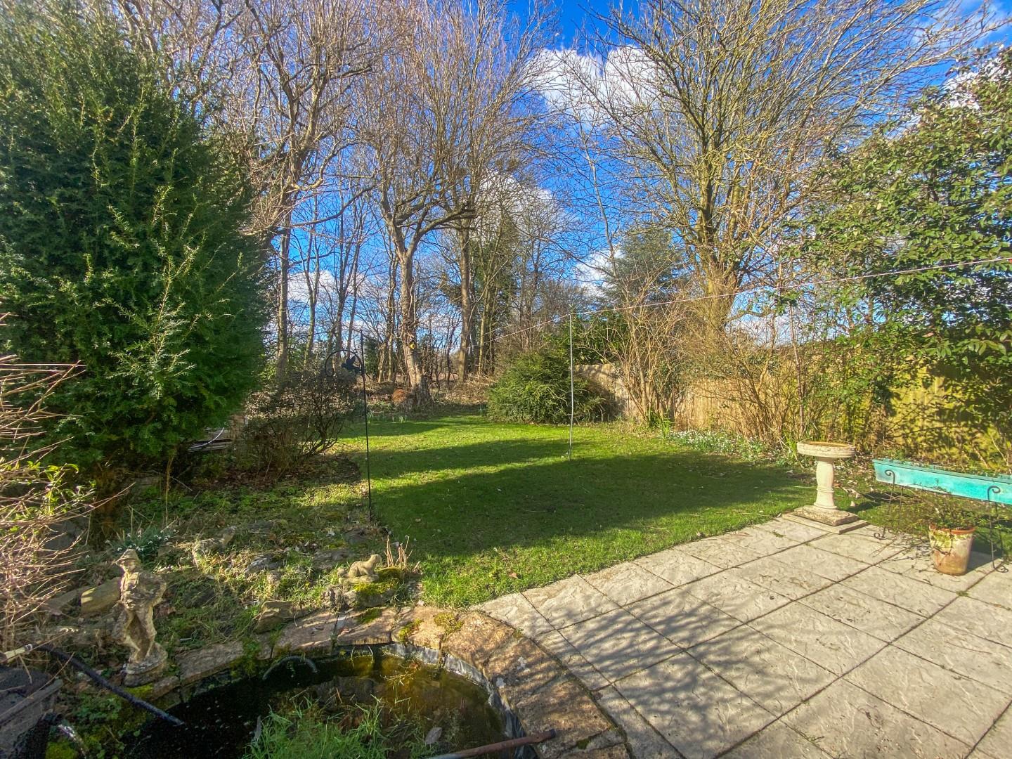 Outside, the property is set back from the road and is laid mainly to lawn with a driveway providing parking for two cars and leading to the garage with up and over door, power and light connected. A side access leads to the rear garden which is laid mainly to lawn with well stocked flower and shrub borders and beds, a selection of trees and bushes, wildlife pond, timber shed and all backs onto a pleasant wooded area and fields beyond.