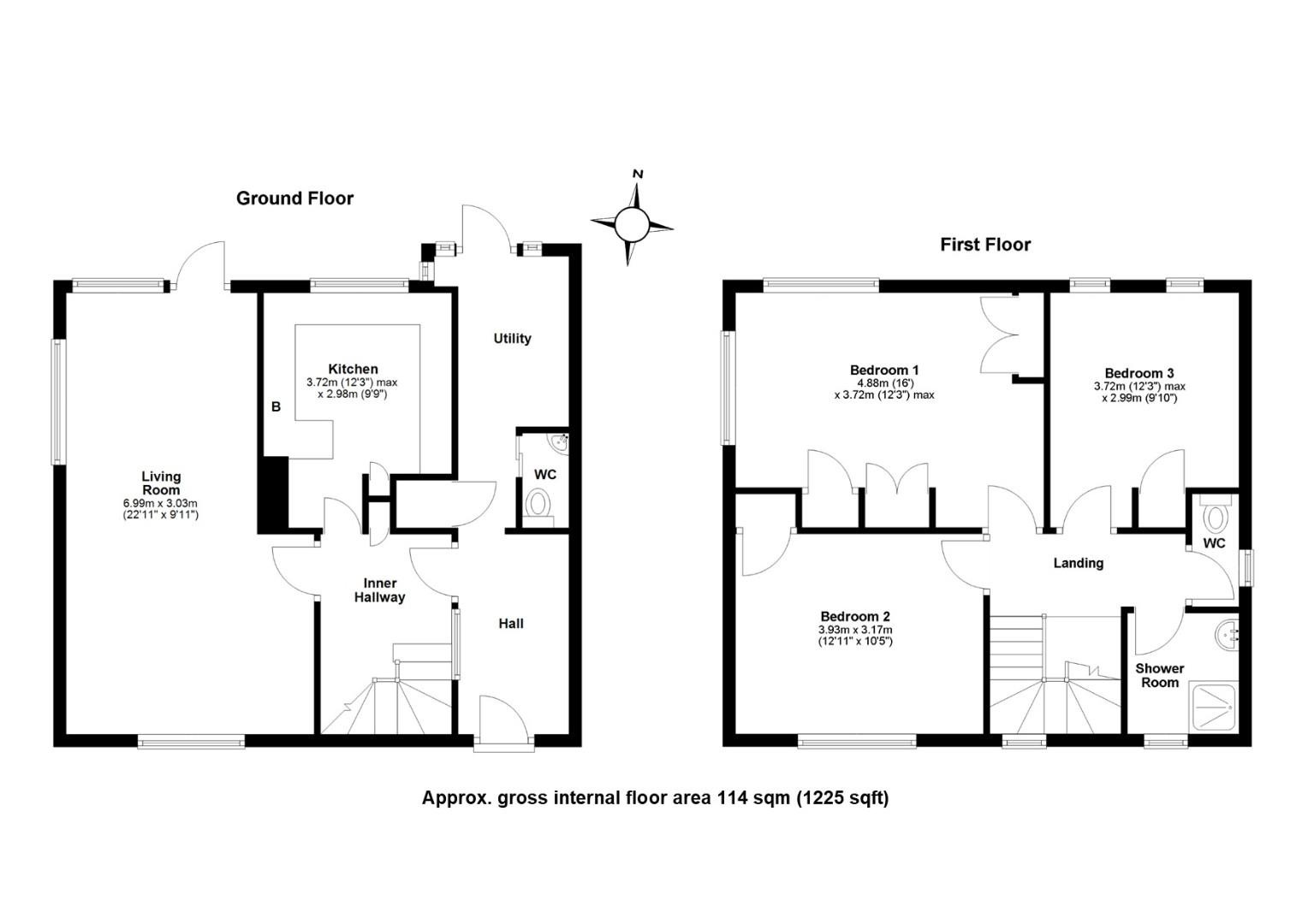 There are three large double bedrooms, all with fitted wardrobe cupboards, a shower room and a separate WC.