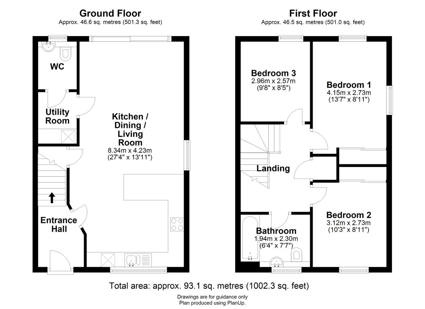 Upstairs, the property boasts three well-proportioned bedrooms, including two generous double bedrooms with fitted wardrobes and sliding mirrored doors. Bedroom one further benefits from double aspect windows. There is also a stylish family bathroom fitted with a three-piece suite with shower over bath. A landing with airing cupboard completes the first floor.