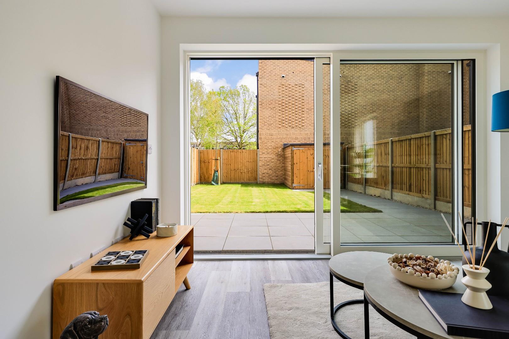 The living space is flooded with natural light with a large, double-glazed window to the front and full height sliding doors to the rear; allowing the living space to extend outside to the patio and garden.