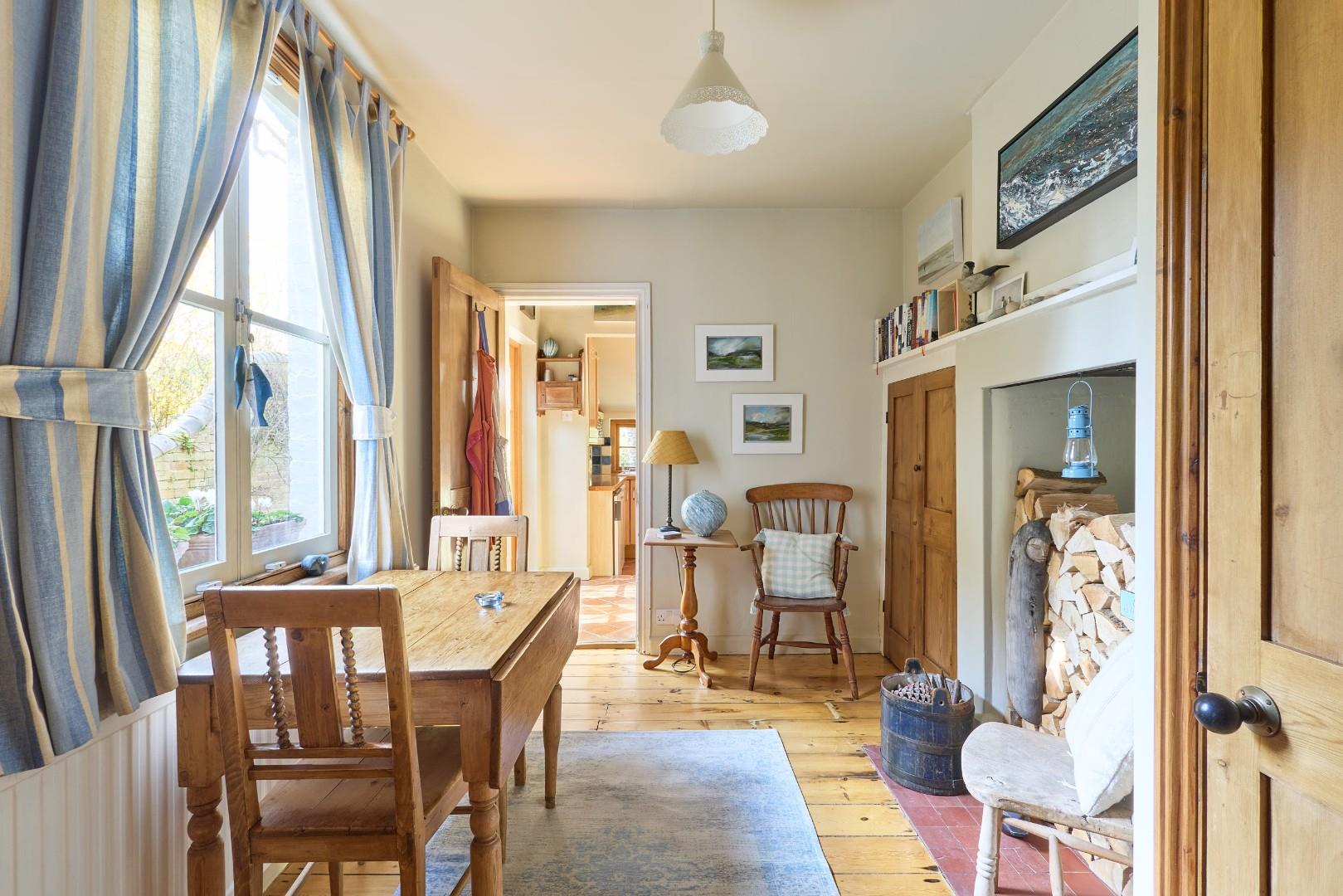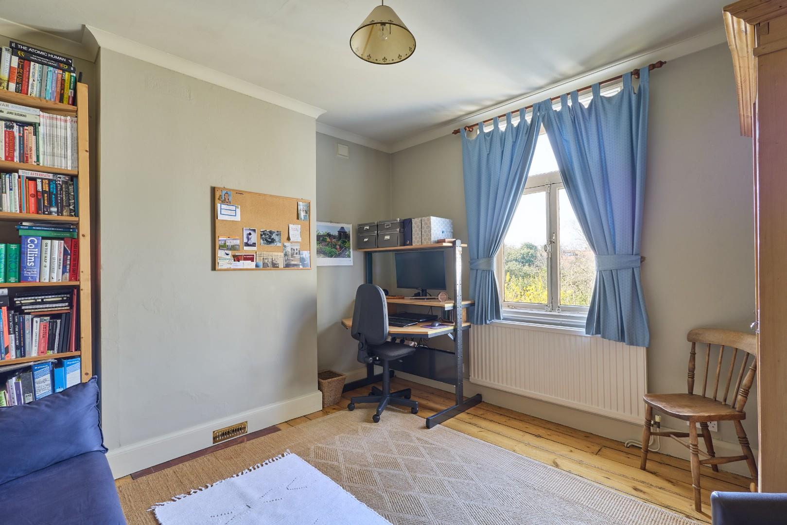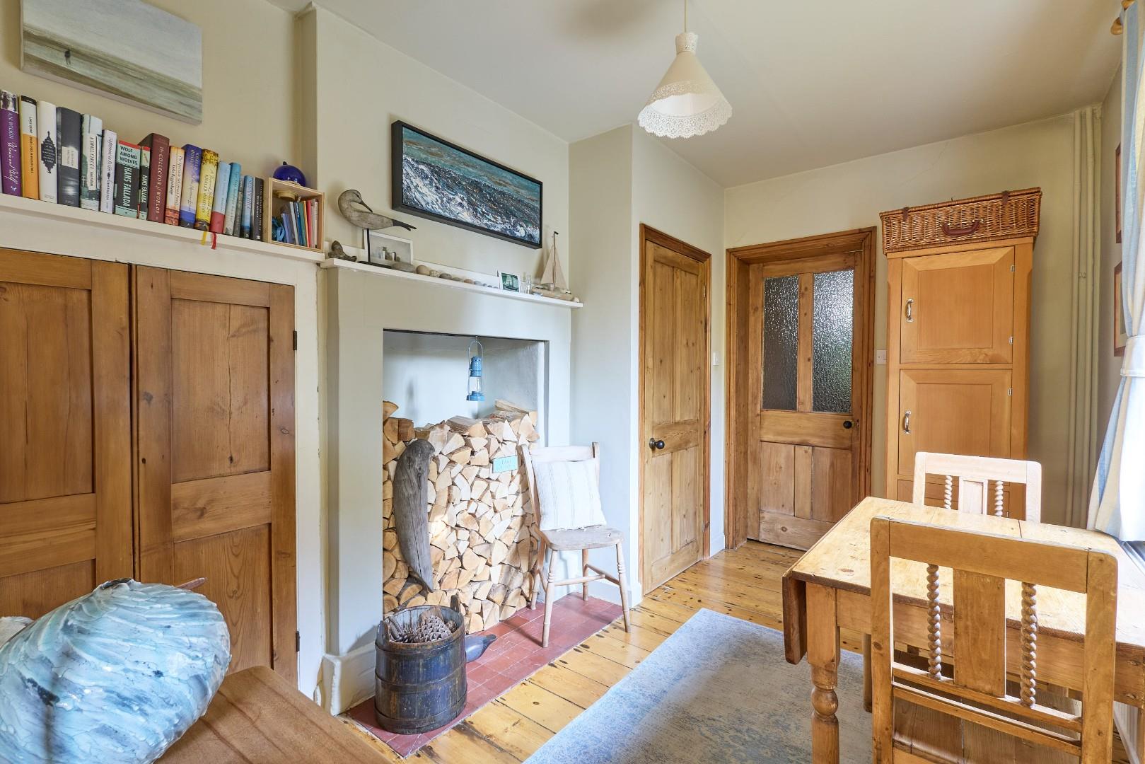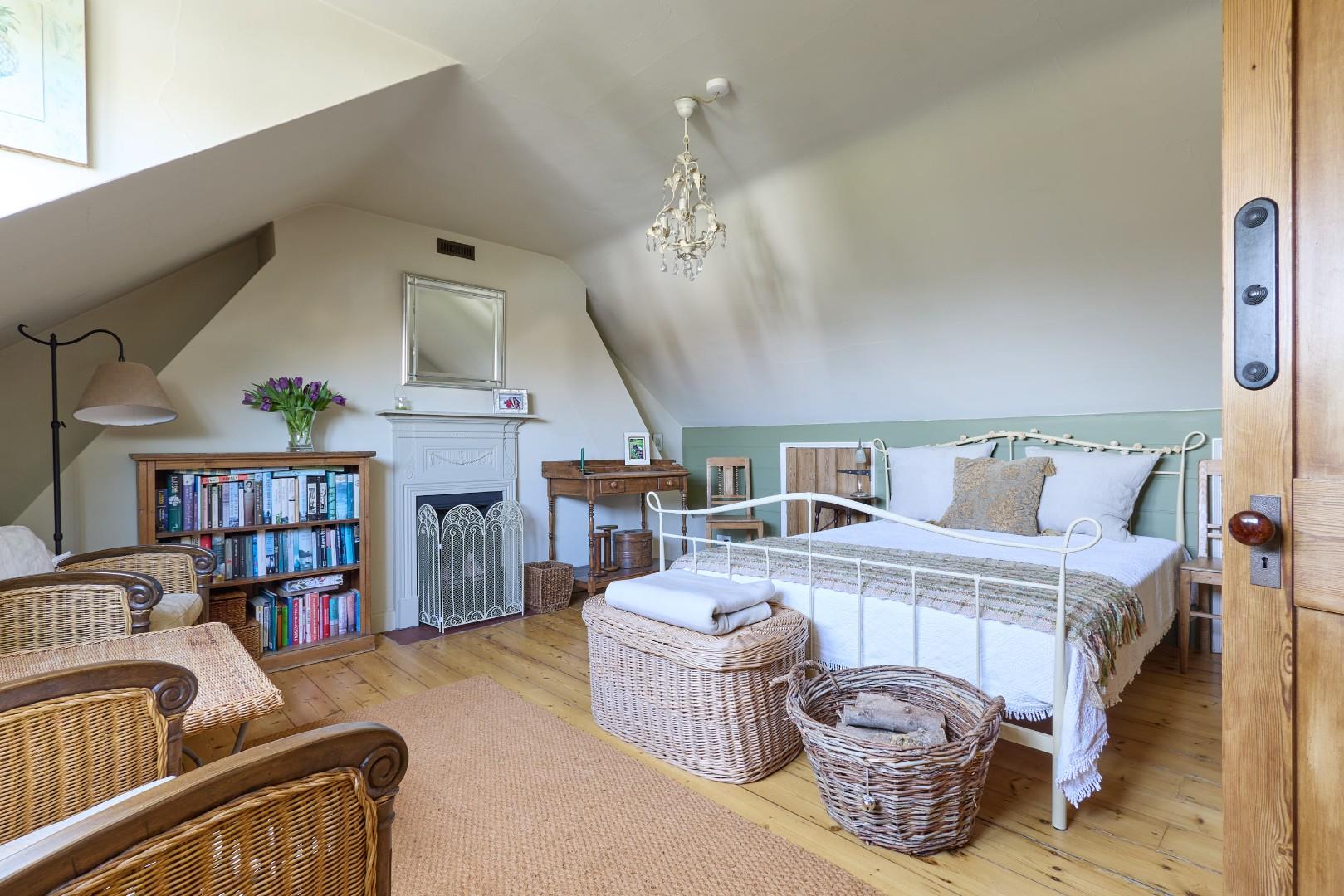 Upstairs the accommodation is arranged over a further two floors, the first housing two double bedrooms and a generous bathroom, which includes a separate bath, shower and houses the airing cupboard and hot water cylinder. Bedroom 3 is on the second floor, has a working fireplace and plenty of useful eaves storage.