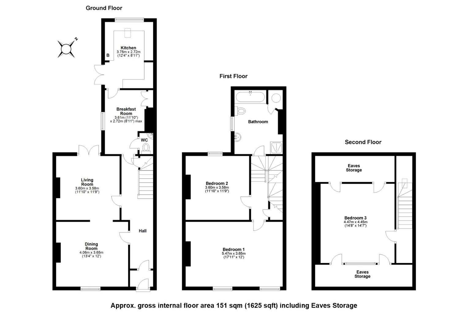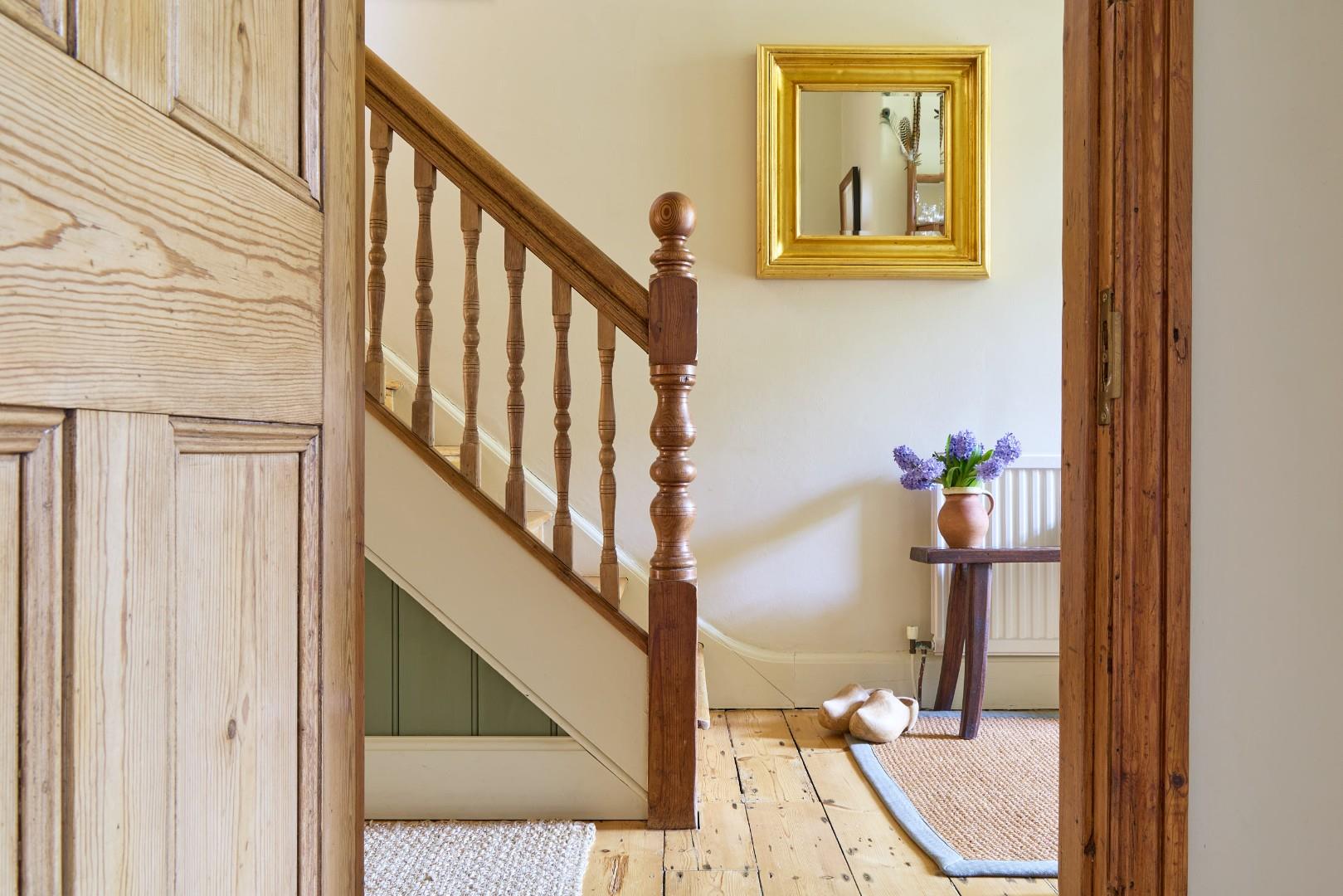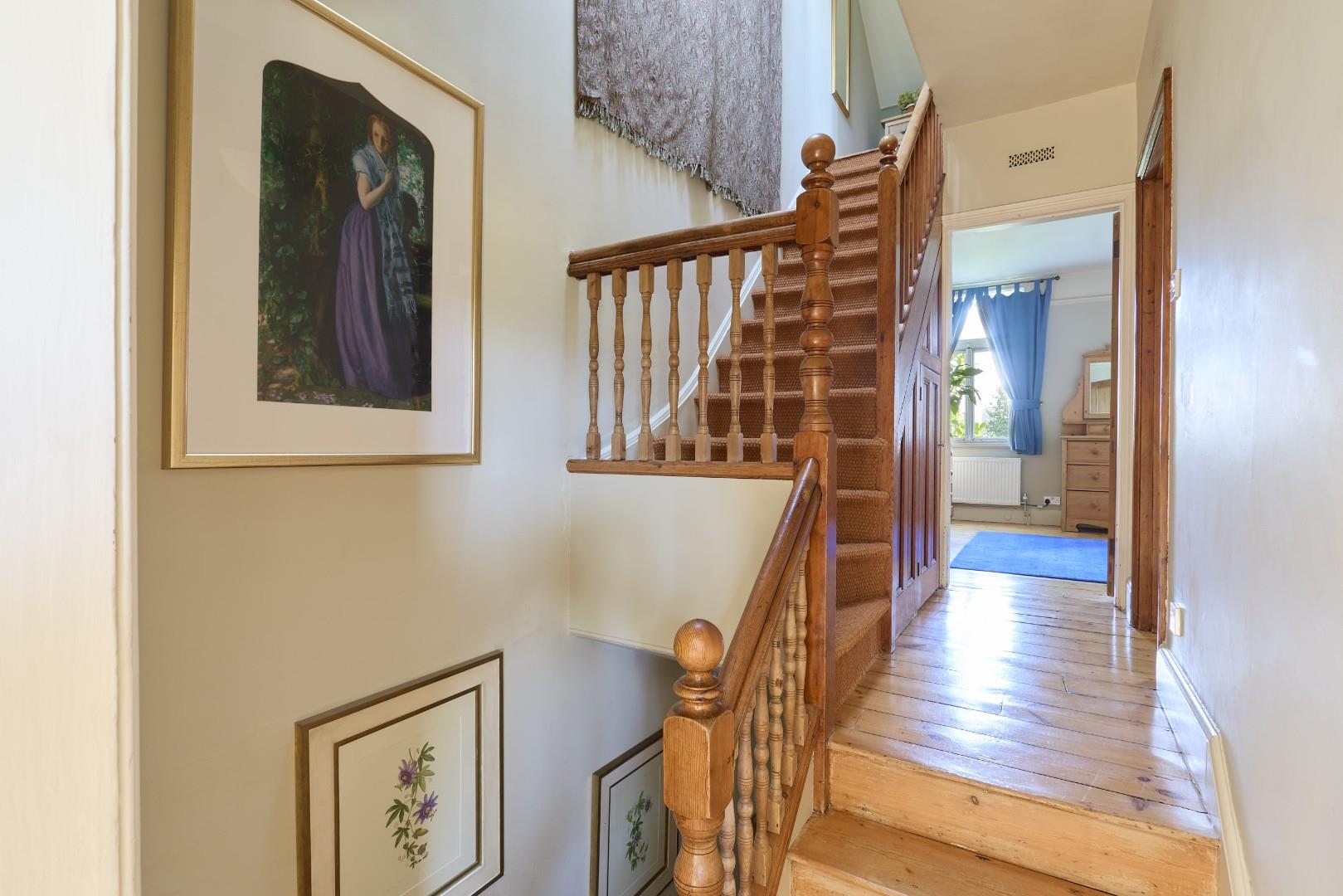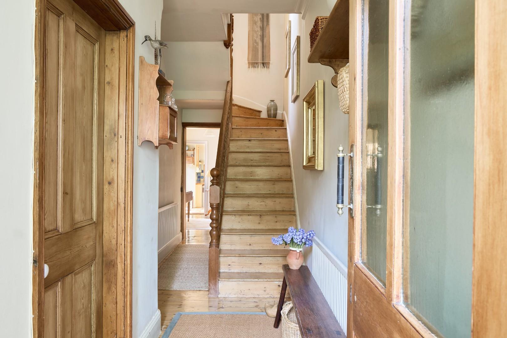 Upstairs the accommodation is arranged over a further two floors, the first housing two double bedrooms and a generous bathroom, which includes a separate bath, shower and houses the airing cupboard and hot water cylinder. Bedroom 3 is on the second floor, has a working fireplace and plenty of useful eaves storage.