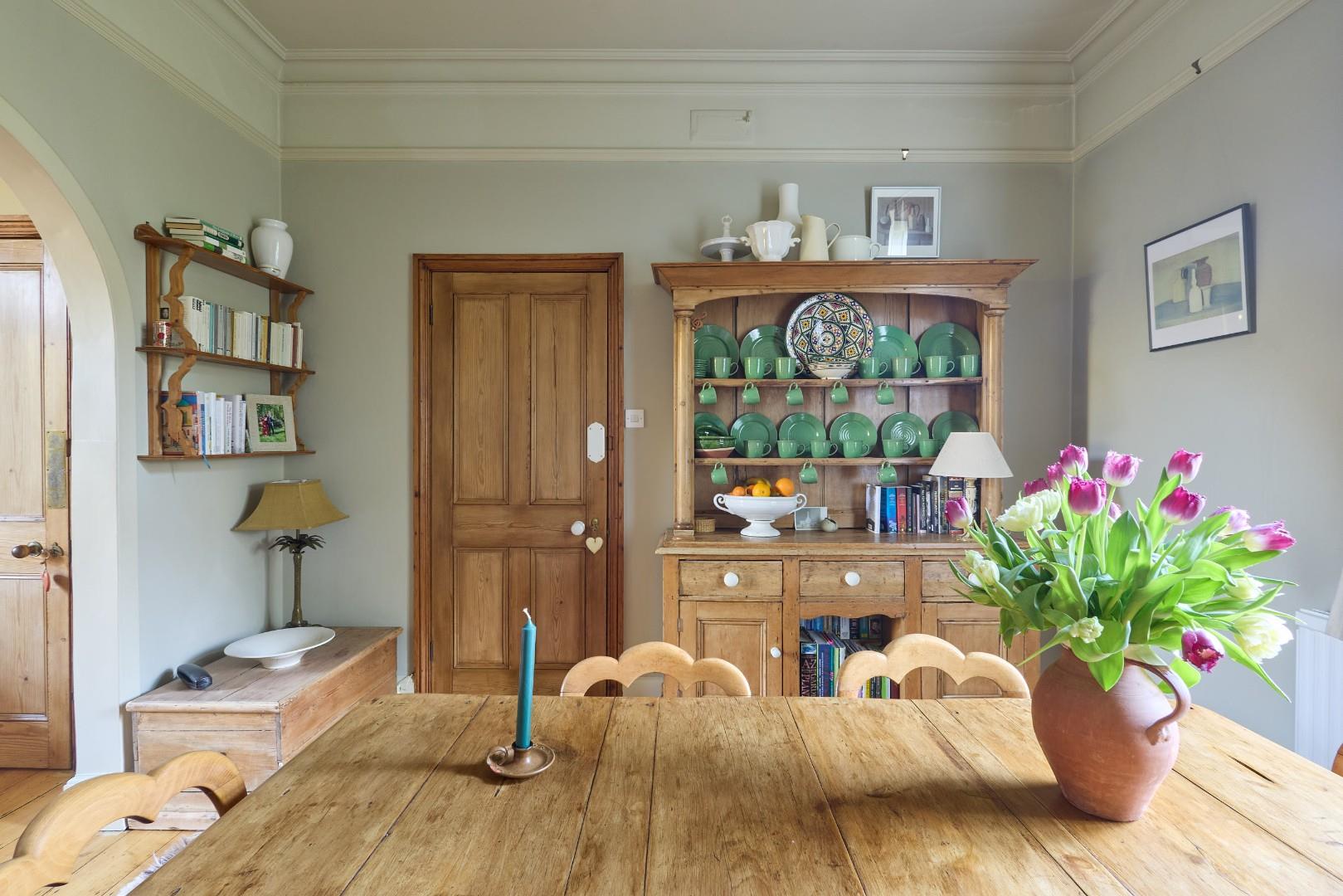 The property is entered via a solid timber door with a fanlight over, leading to an entrance hall with stairs to first floor and finished with stripped pine floorboards which continue through to the various reception rooms. Both the living and dining rooms have feature cast iron fireplaces, contrasted by attractive tiled inserts. An original set of French doors from the living room open onto the private rear garden. The breakfast room has original built-in cupboards and benefits from southerly aspects. There is also a refitted cloakroom W.C off this room. The kitchen has been fitted with a range of base and eye-level units, has a skylight and windows overlooking the garden. The kitchen has various integrated appliances and is finished with solid oak worktops.