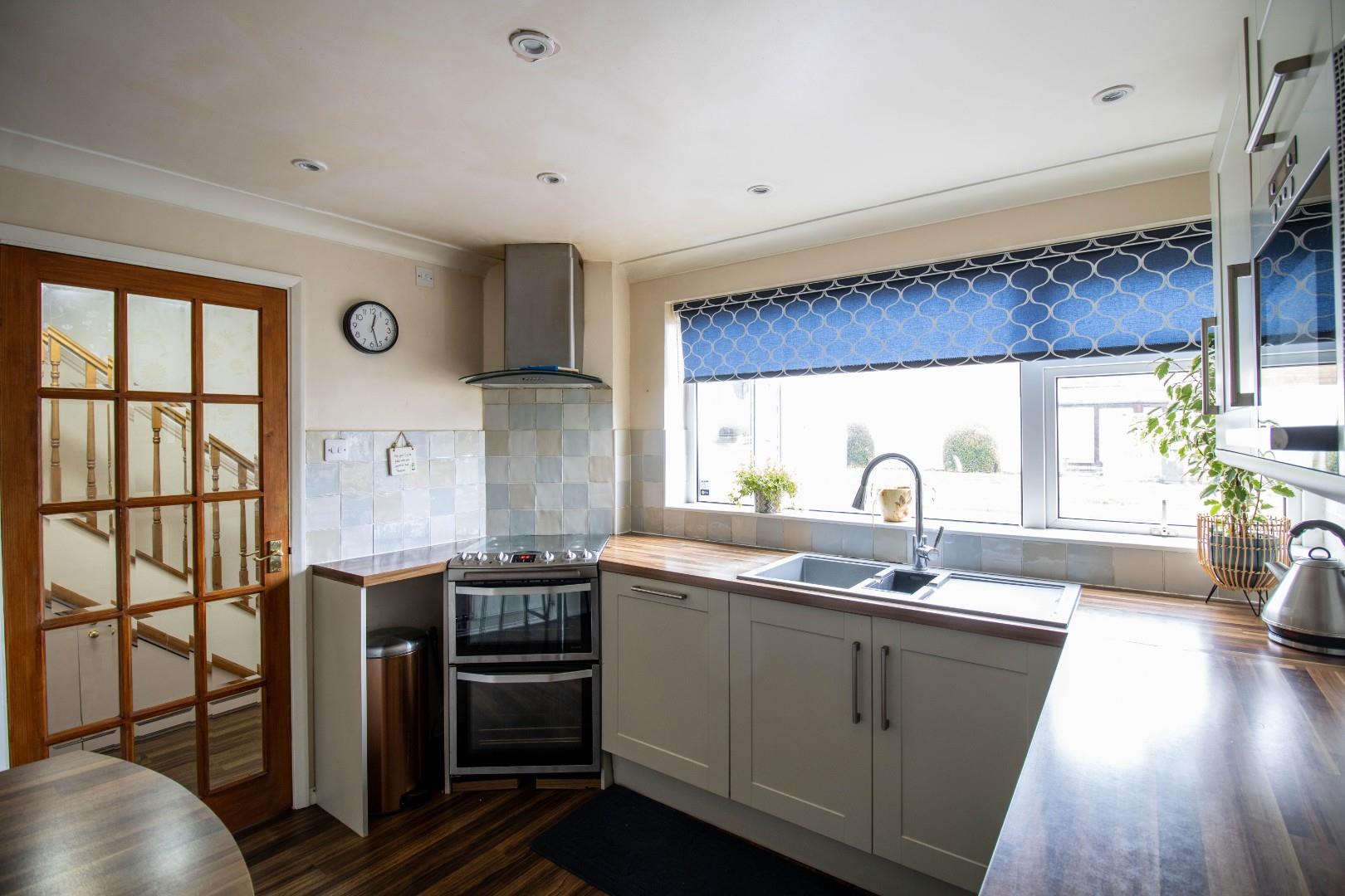Outside, there is a small open-plan front garden, which has a conifer and is paved for ease of maintenance. The west-facing rear garden has an Indian sandstone terrace, well suited to alfresco dining in the warmer months. The remainder is laid to lawn and stocked with a variety of shrubs. There is a storage shed at the foot of the garden which has power. A rear gate provides pedestrian access back to the front of the property via Fernlea Close.