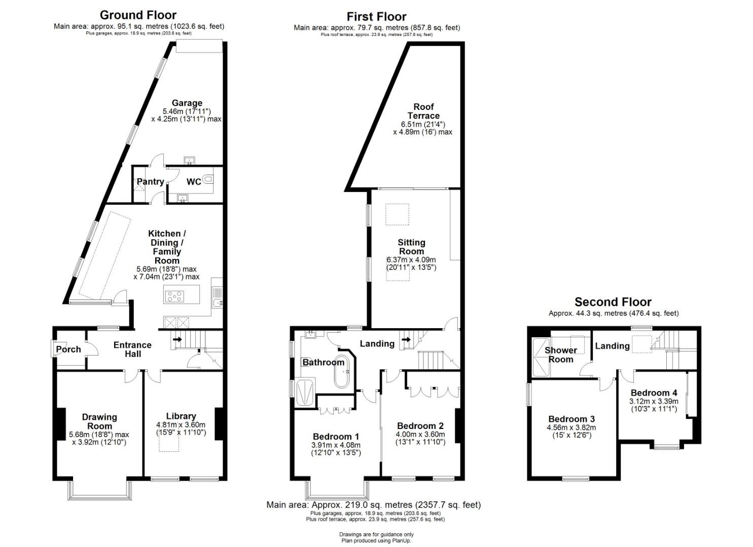 Thoughtfully extended, the property provides generous and versatile living space, beginning with an entrance hall leading to a drawing room, a library complete with wine cellar, and a kitchen/breakfast room, with a utility room. The first floor features a spacious living room with doors opening onto a private roof terrace—perfect for outdoor dining—along with two double bedrooms and a family bathroom. The top floor offers two further double bedrooms and an additional shower room.
