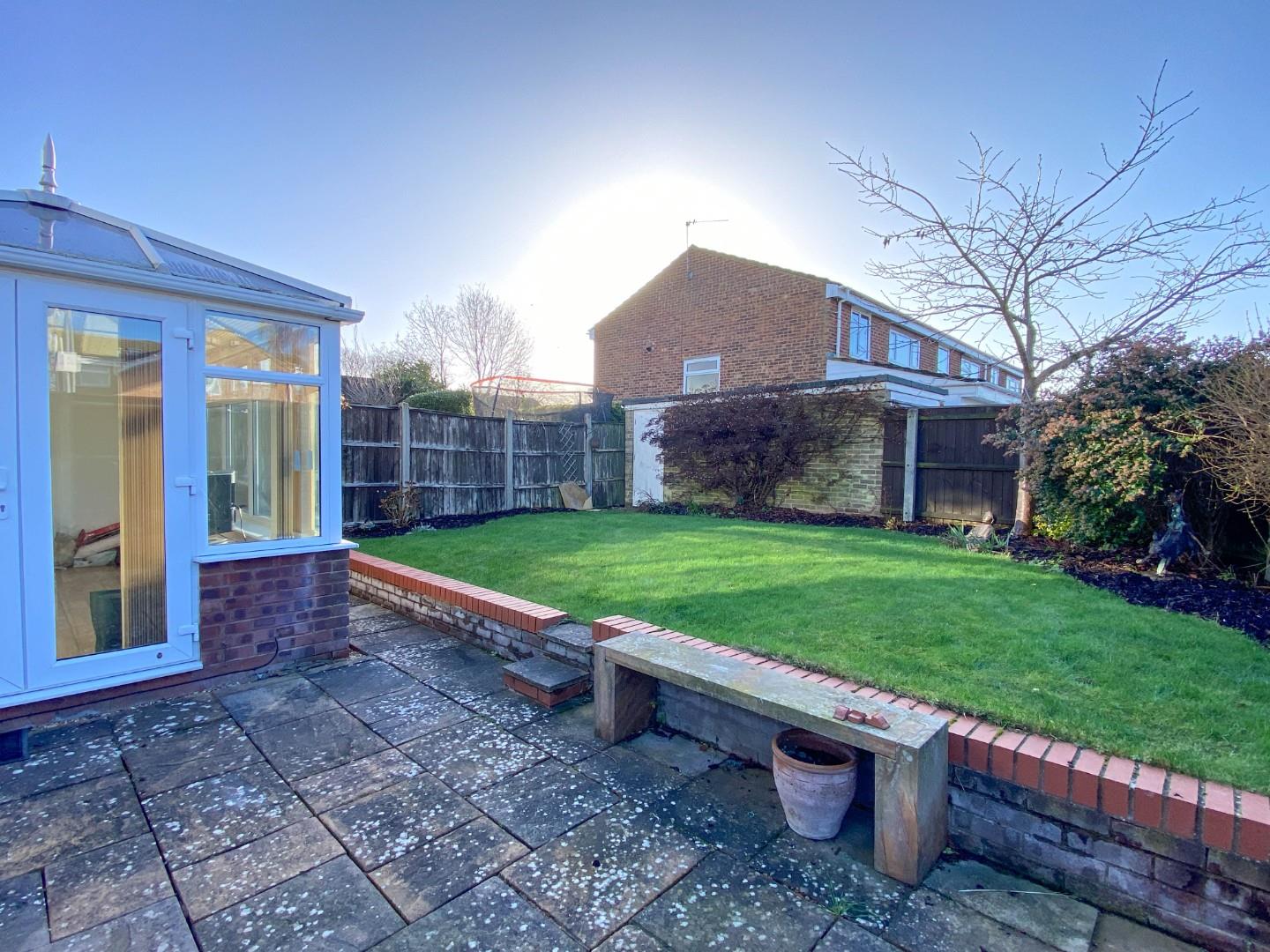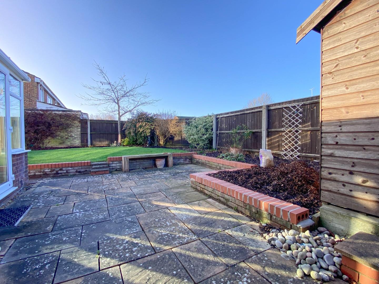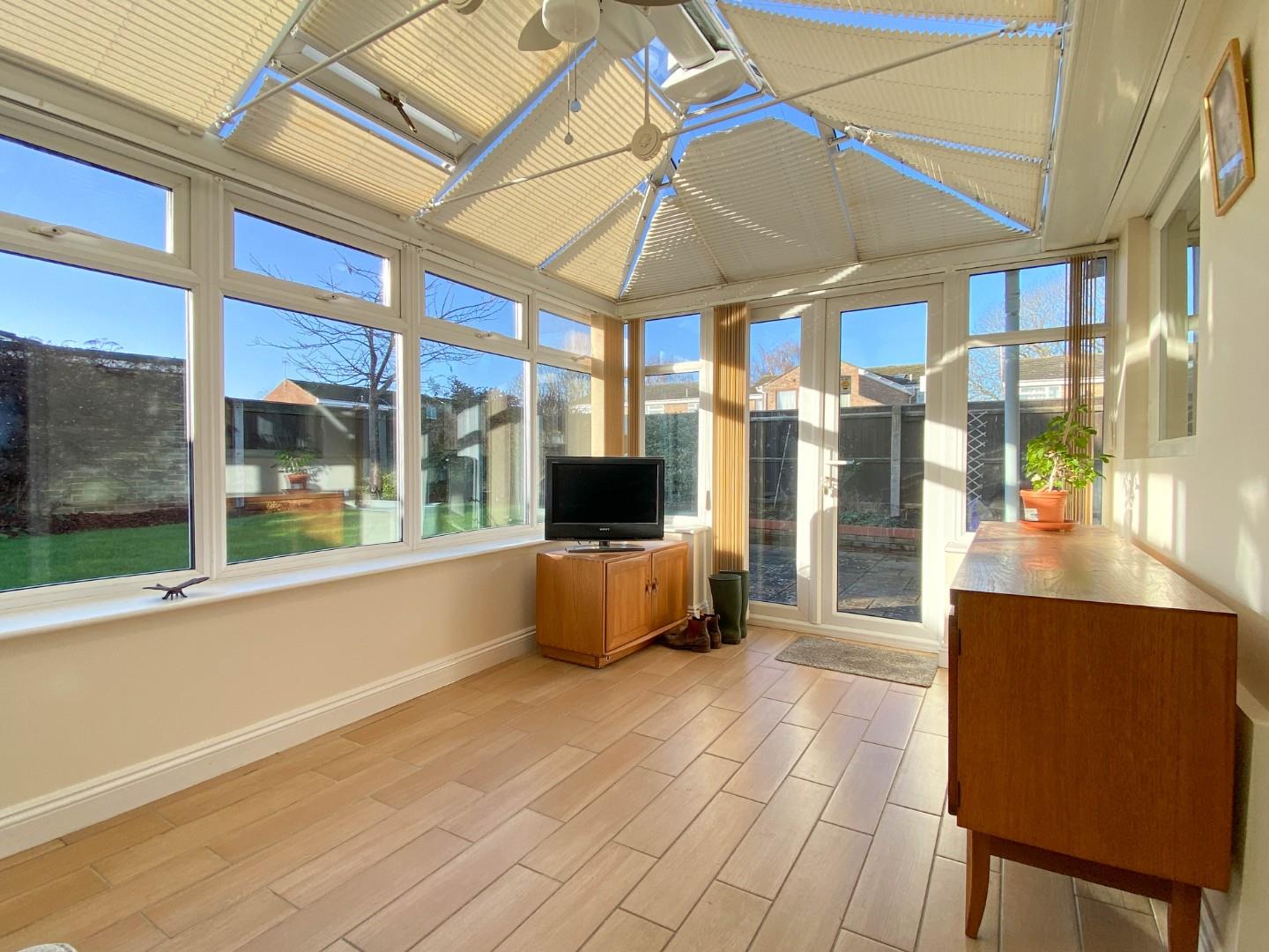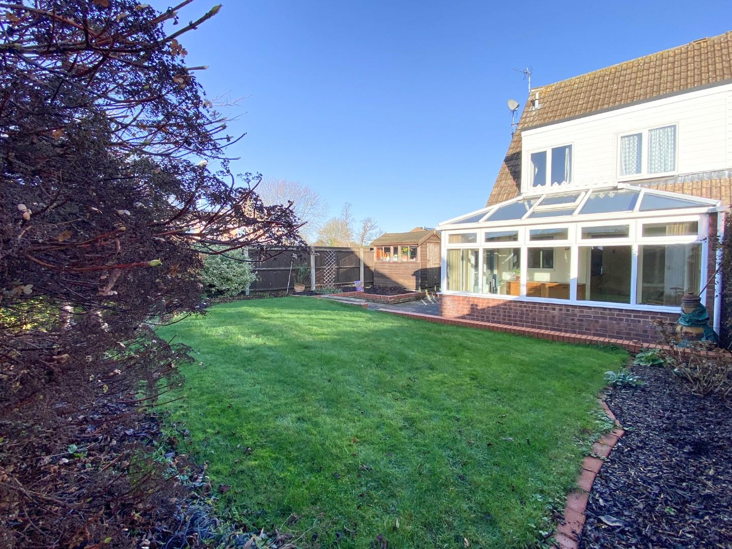 Externally, the property occupies a good-sized plot measuring 0.08 acres. To the front, is a large lawn area with a pathway leading to the front door and one of two driveways providing off road parking. The rear garden of the property has a large patio area accessible off the conservatory and a raised lawn area with herbaceous borders. Accessible off the rear garden is the detached garage with further parking to the front.
