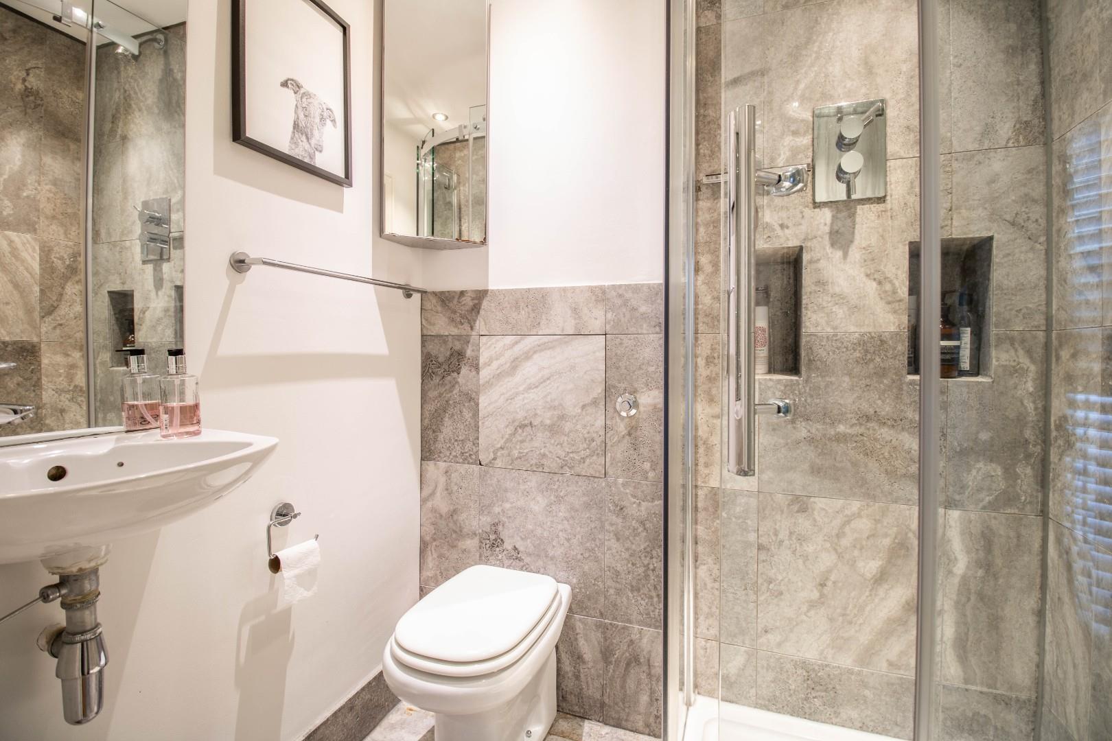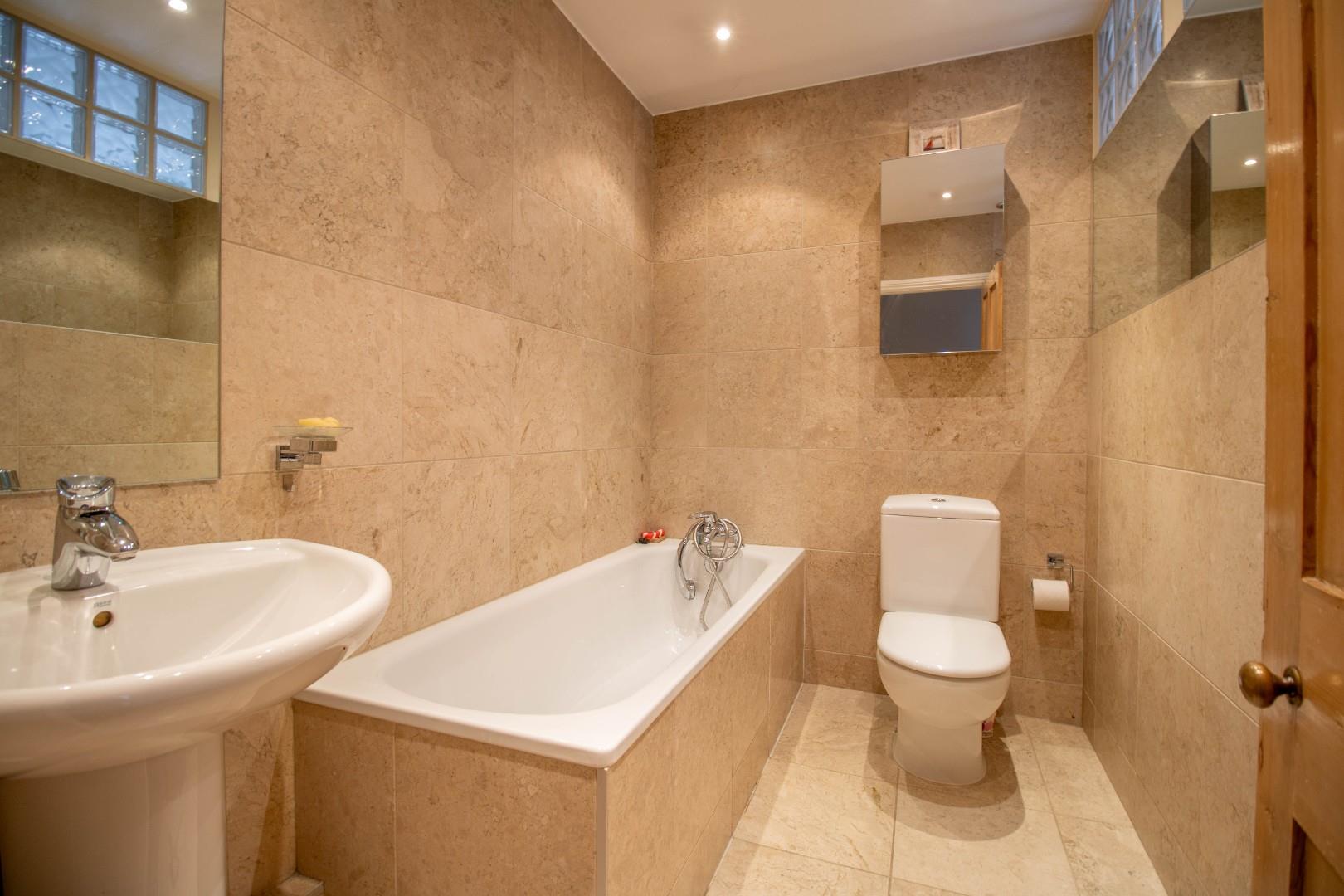 Upstairs are three bedrooms, the principal bedroom is particularly spacious and includes a feature fireplace, coupled with bespoke fitted wardrobes. The first-floor bathroom has been fitted with a modern white suite including a shower over the bath, complemented by inset spotlights and a heated towel rail.