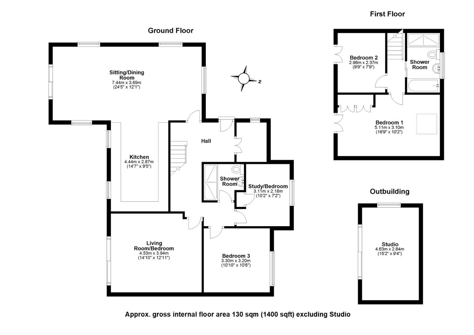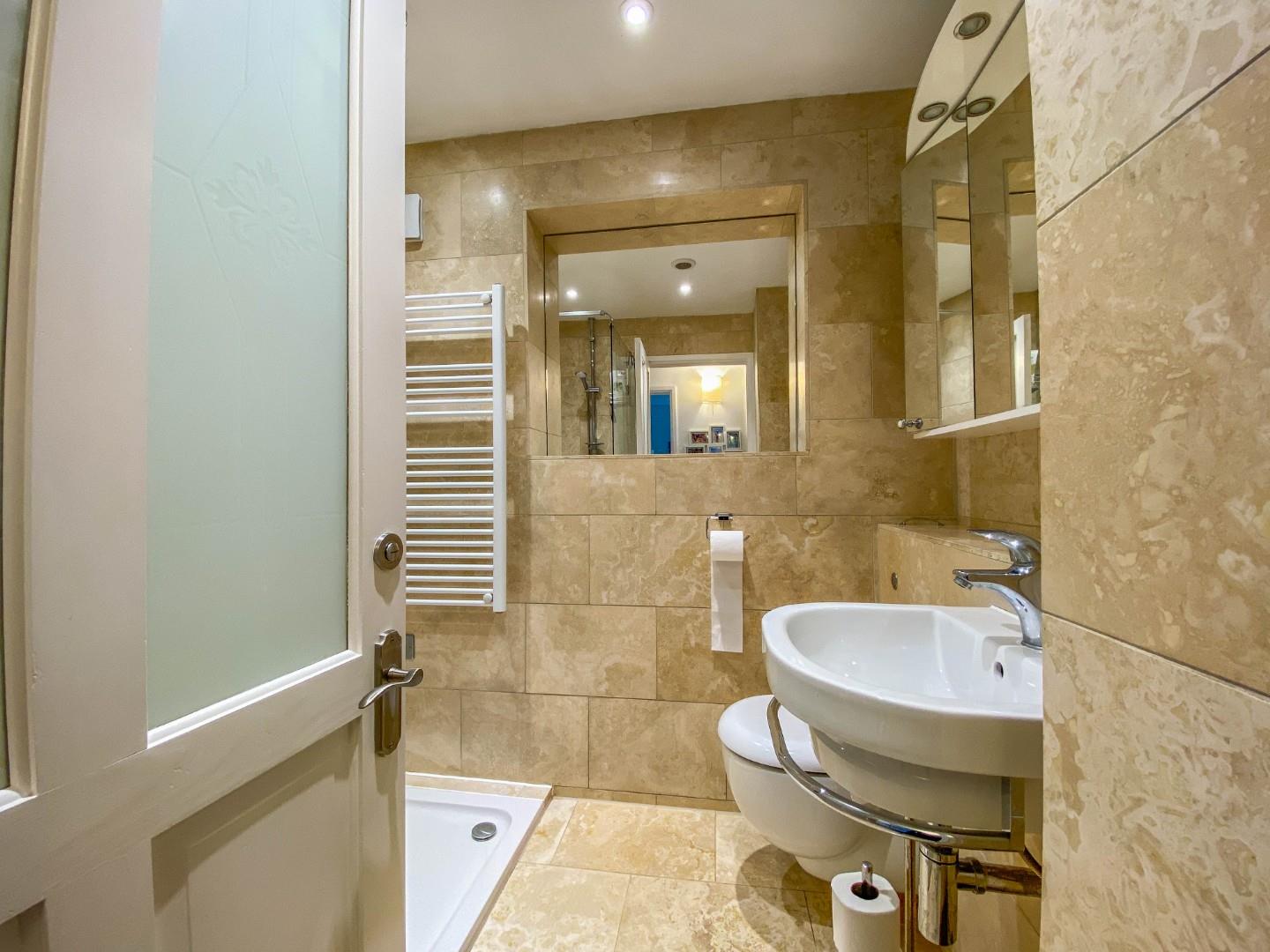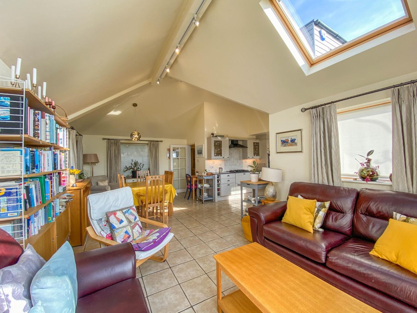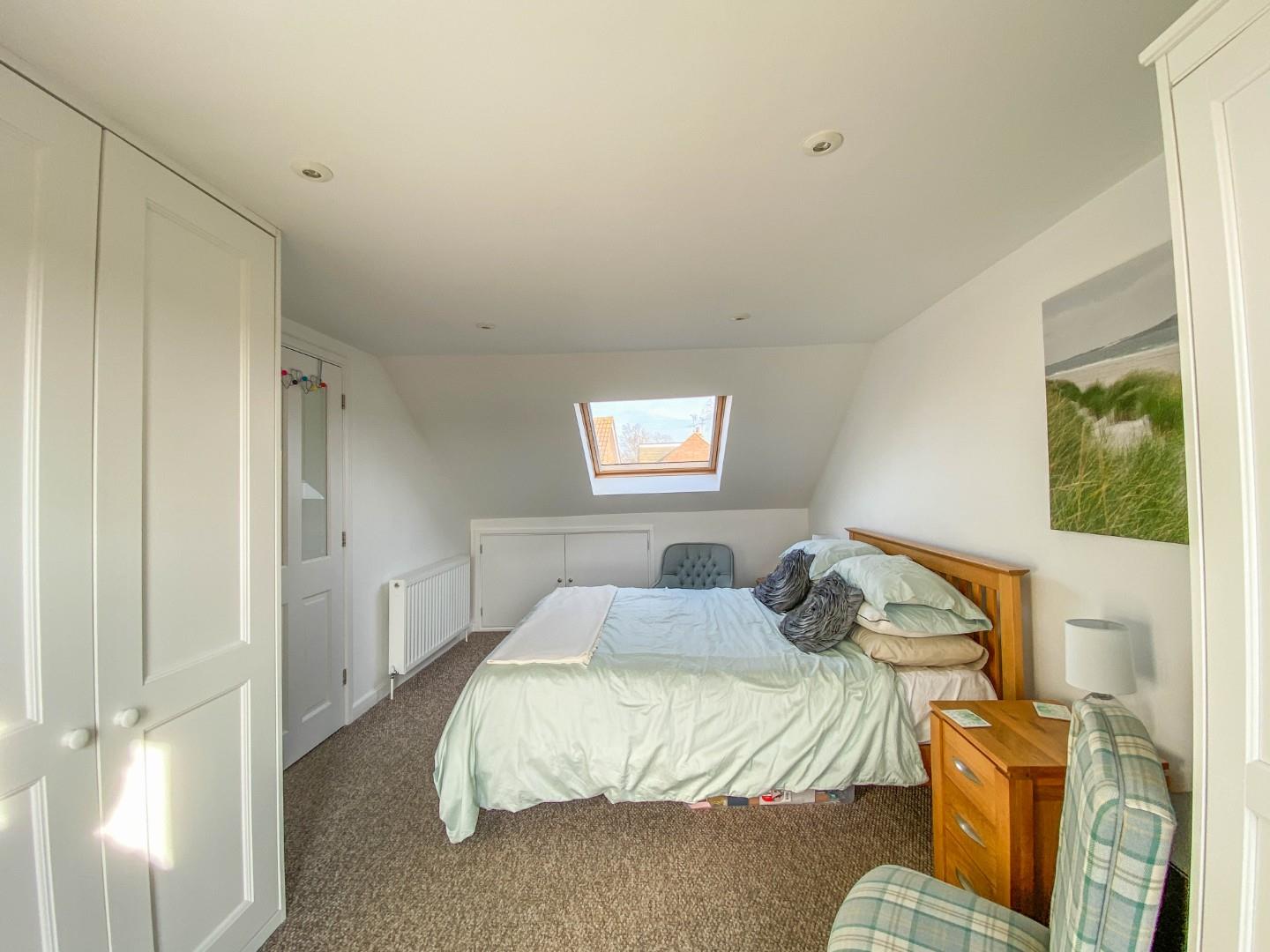 The accommodation comprises a generous welcoming reception hall with bespoke staircase to first floor accommodation and walk-in cupboard. The sitting room has patio doors to the garden and has also been utilised as a bedroom. There are two further ground floor bedrooms and a re-fitted luxury shower room with walk-in shower and travertine wall and floor tiles. Particularly impressive is the T-shaped open-planned living/kitchen/ dining room's striking vaulted ceiling with a superb degree of natural light. The kitchen has been finished beautifully with attractive cabinetry complemented by granite work surfaces. There are a number of integrated appliances which include a gas hob, oven, microwave, dishwasher, fridge/freezer. The living/dining room is generous in size with space being emphasized by the vaulted ceiling. There are patio doors that lead to the rear garden and attractive tile flooring with heating under.