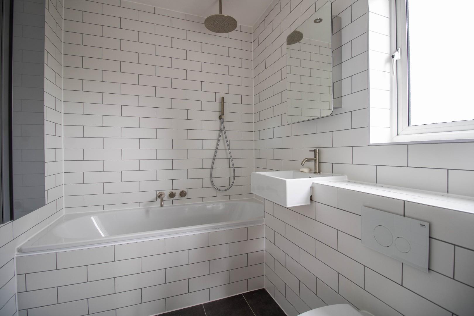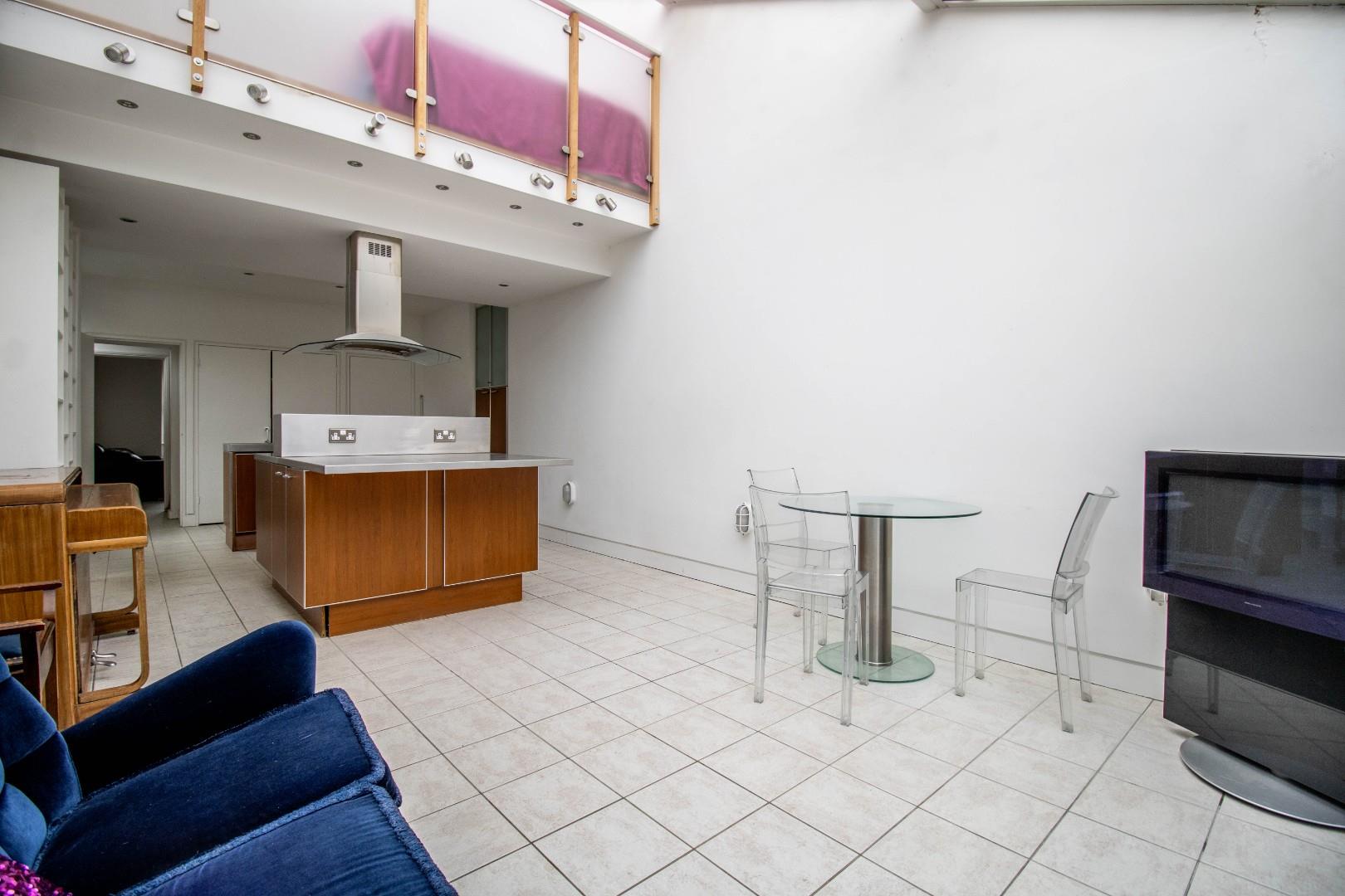 On the ground floor is a living room with a bay-window, a feature fireplace and built-in shelving, complemented by attractive tiling and inset spotlights. There is a bright open-plan kitchen/dining room with a fully glazed roof and a central island with an integrated oven and a five-ring gas hob with an extractor over. Two sets of double doors open onto the courtyard garden and there is also a cloakroom W.C, located under the stairs.