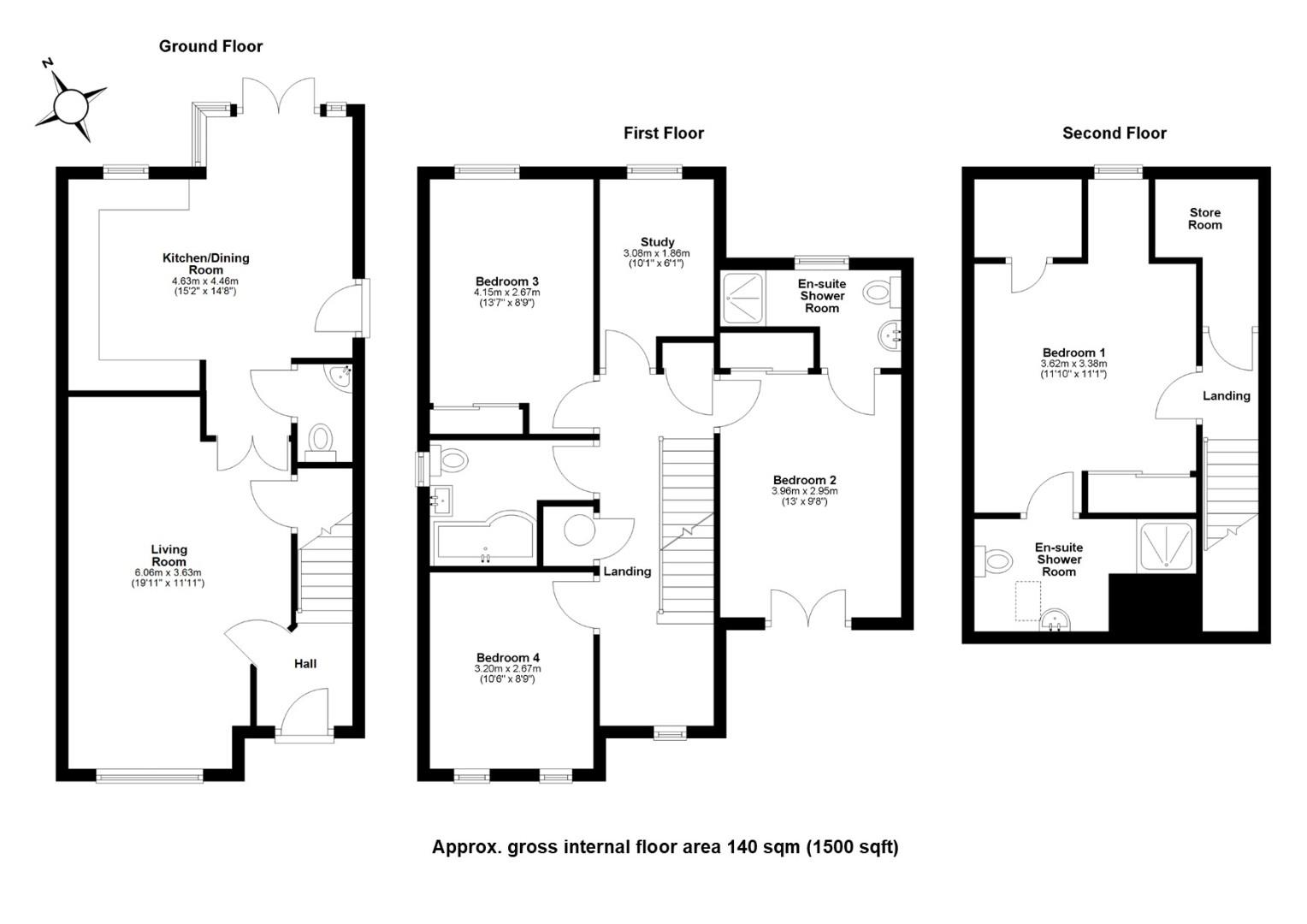 The first and second floor accommodation comprises of four good size bedrooms, fifth bedroom/study and family bathroom. Both principle bedroom and bedroom two benefits from en-suite shower room’s and built in wardrobes, along with bedroom three benefiting from built in wardrobes.