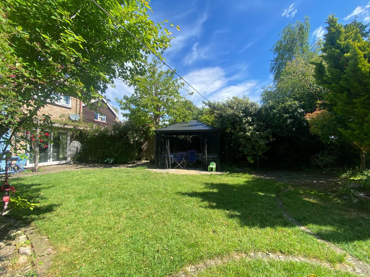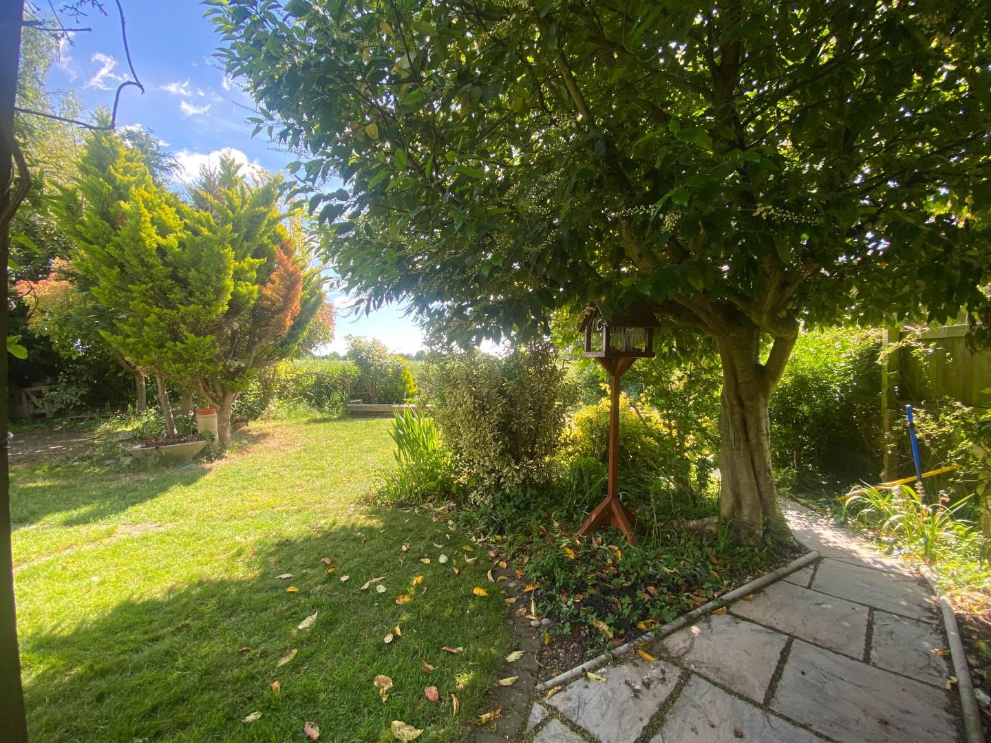 Outside, the house is set back from the road behind a generous lawned front garden and a driveway which accommodates several vehicles and leads to the garage with up and over door, power and light connected. Gated access leads to the rear garden which is laid to shaped lawns with well stocked flower and shrub borders and beds, shingle pathways, a selection of trees and bushes, raised vegetable/ herb garden and a large patio with a covered pergola over which is ideal for alfresco dining and all enjoys good levels of privacy and backs onto fields to the rear.