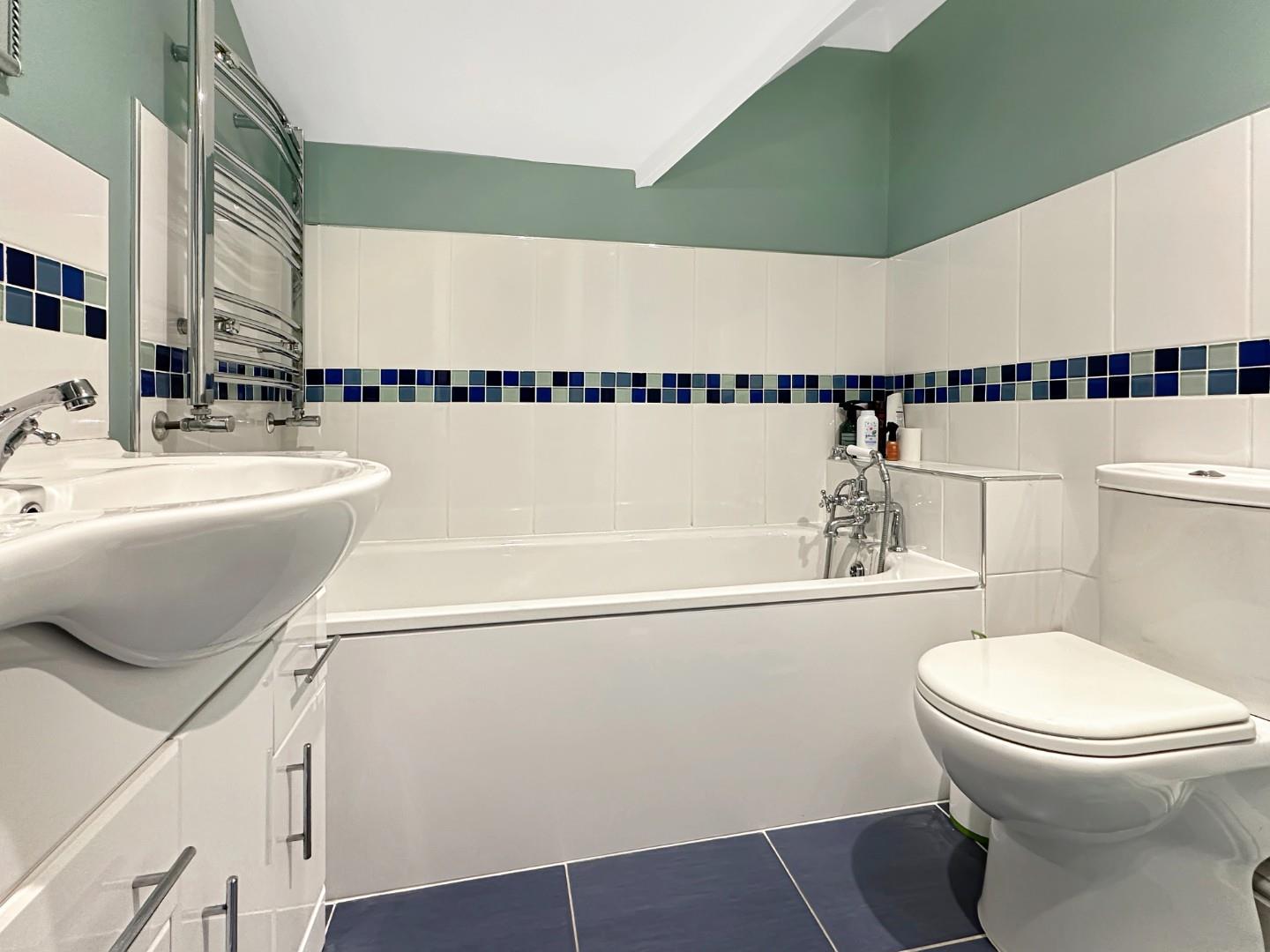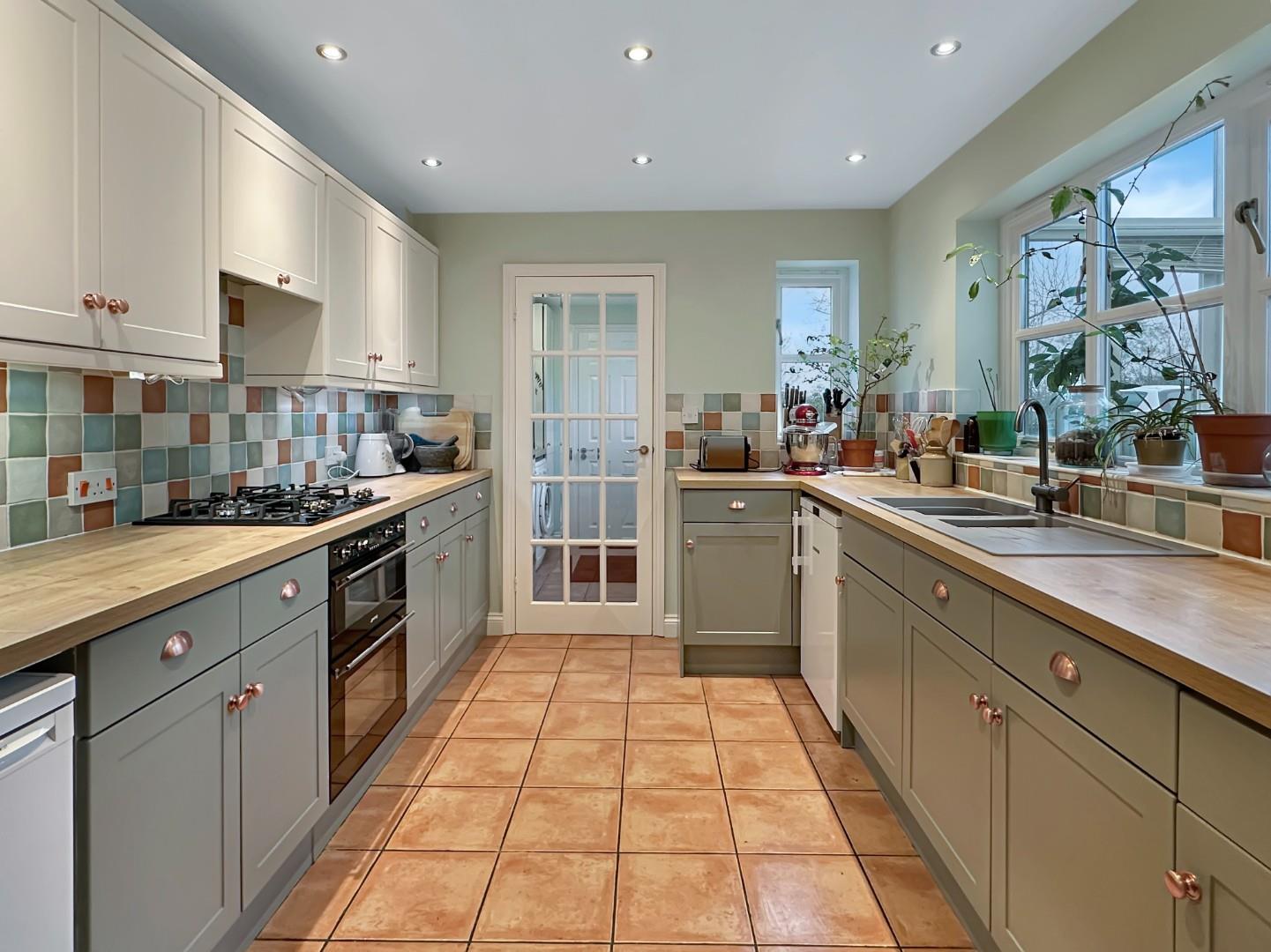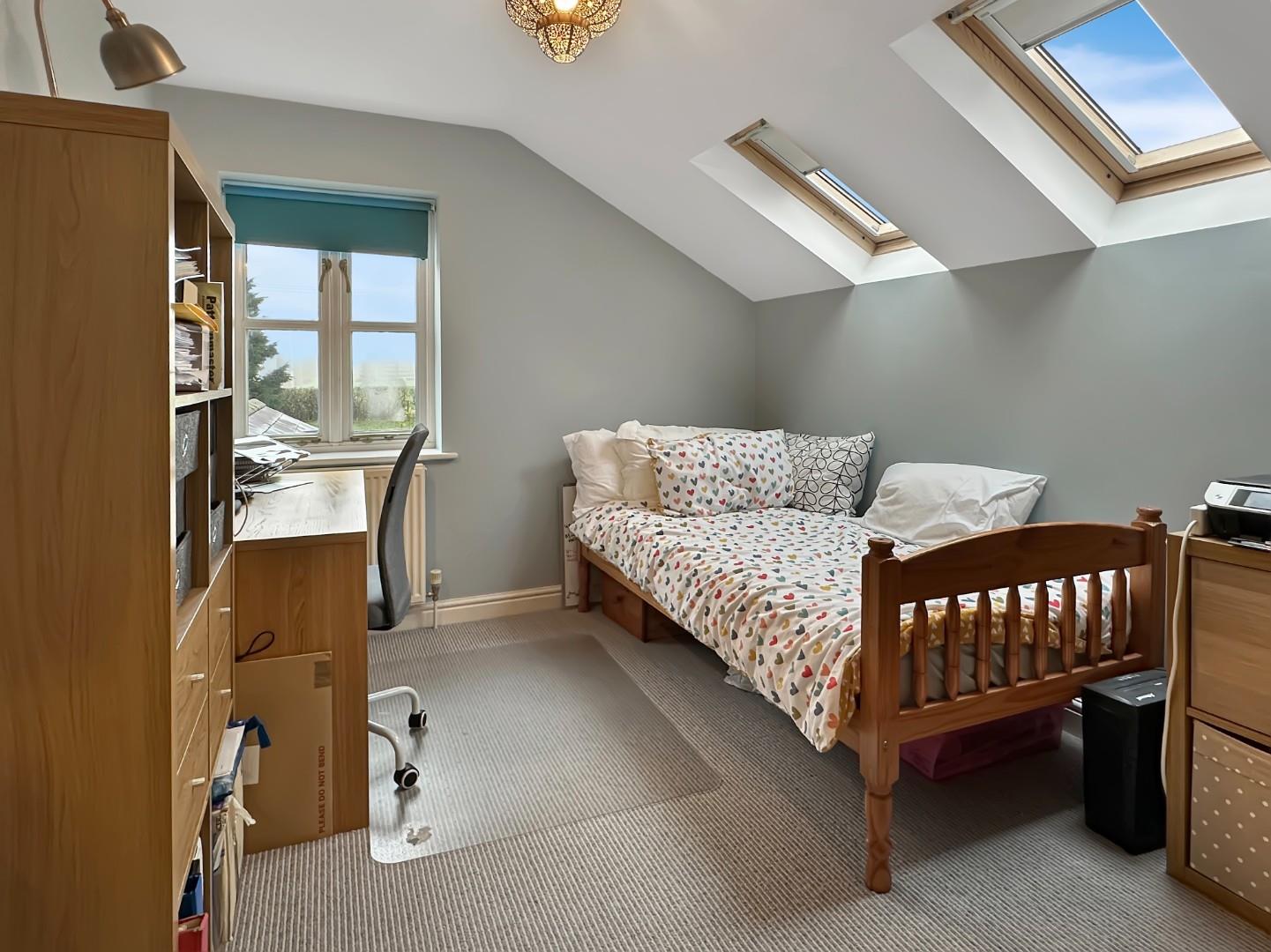 To the first floor are three double bedrooms each benefitting from far reaching views across open fields. Completing the first floor is a family bathroom suite with a panelled bath, low level WC, Pedestal sink with vanity unit and a single enclosed shower.