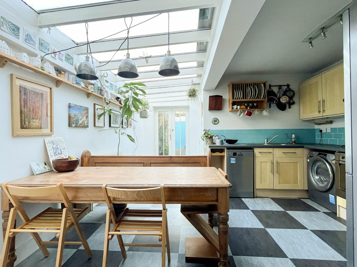 On the ground floor, a newly created entrance hall features Victorian-style corbels and provides access to the living room, which includes an inset coal-effect gas stove with a wood surround and fitted shelving either side. A snug/dining room has a useful under stairs storage cupboard and opens into the extended kitchen/dining room, which has an impressive, glazed roof and double doors opening onto the rear garden. With a range of fitted base and wall-mounted units, the kitchen has space for appliances and plumbing for a washing machine and a dishwasher. To the rear, there is a generous bathroom with a stylish bath, walk-in shower, floating wash basin with a vanity unit, WC and a heated towel rail.