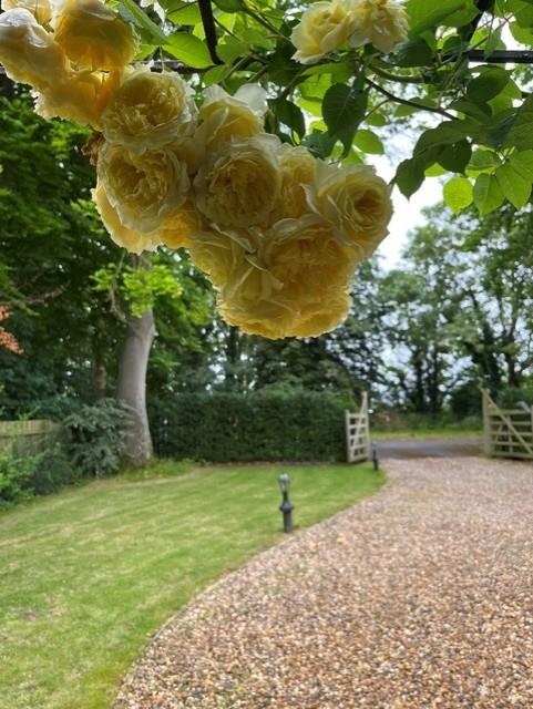 Outside, the property is set back from the road, with a generous gravelled driveway providing parking for numerous vehicles and a oak open cart lodge with power and light connected. Gated access leads to a vegetable, herb and fruit garden, and beyond is the stunning rear garden which has been professionally landscaped.
