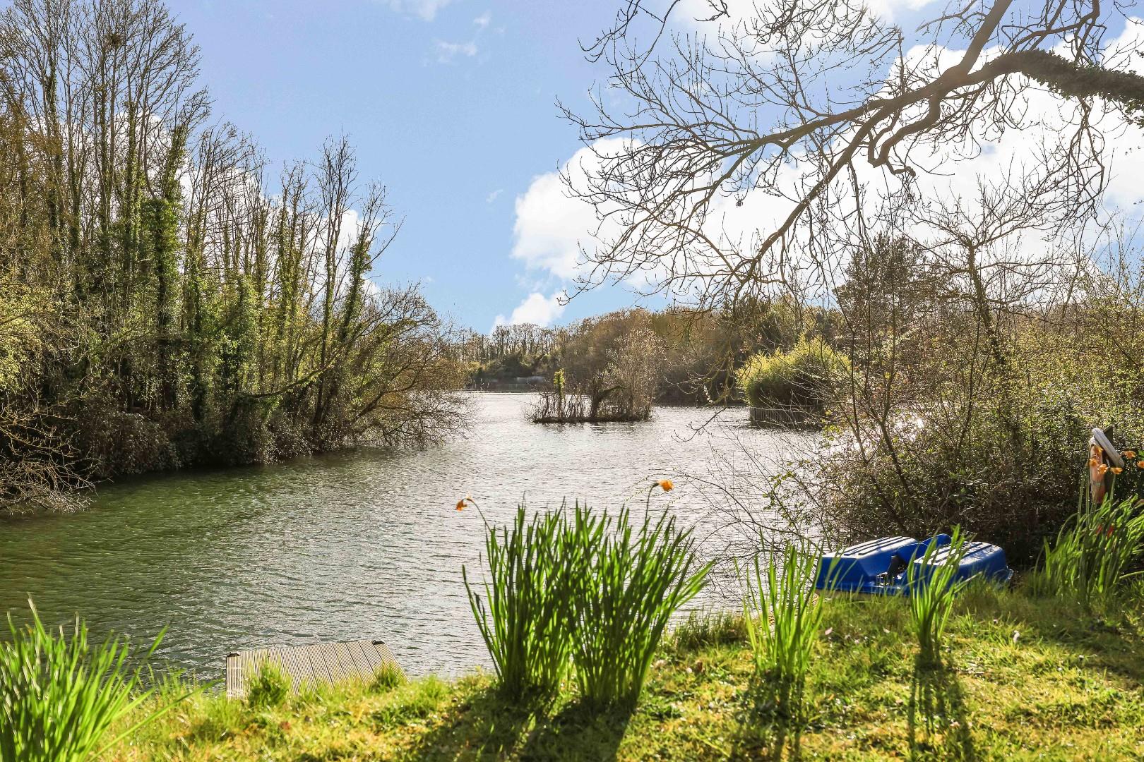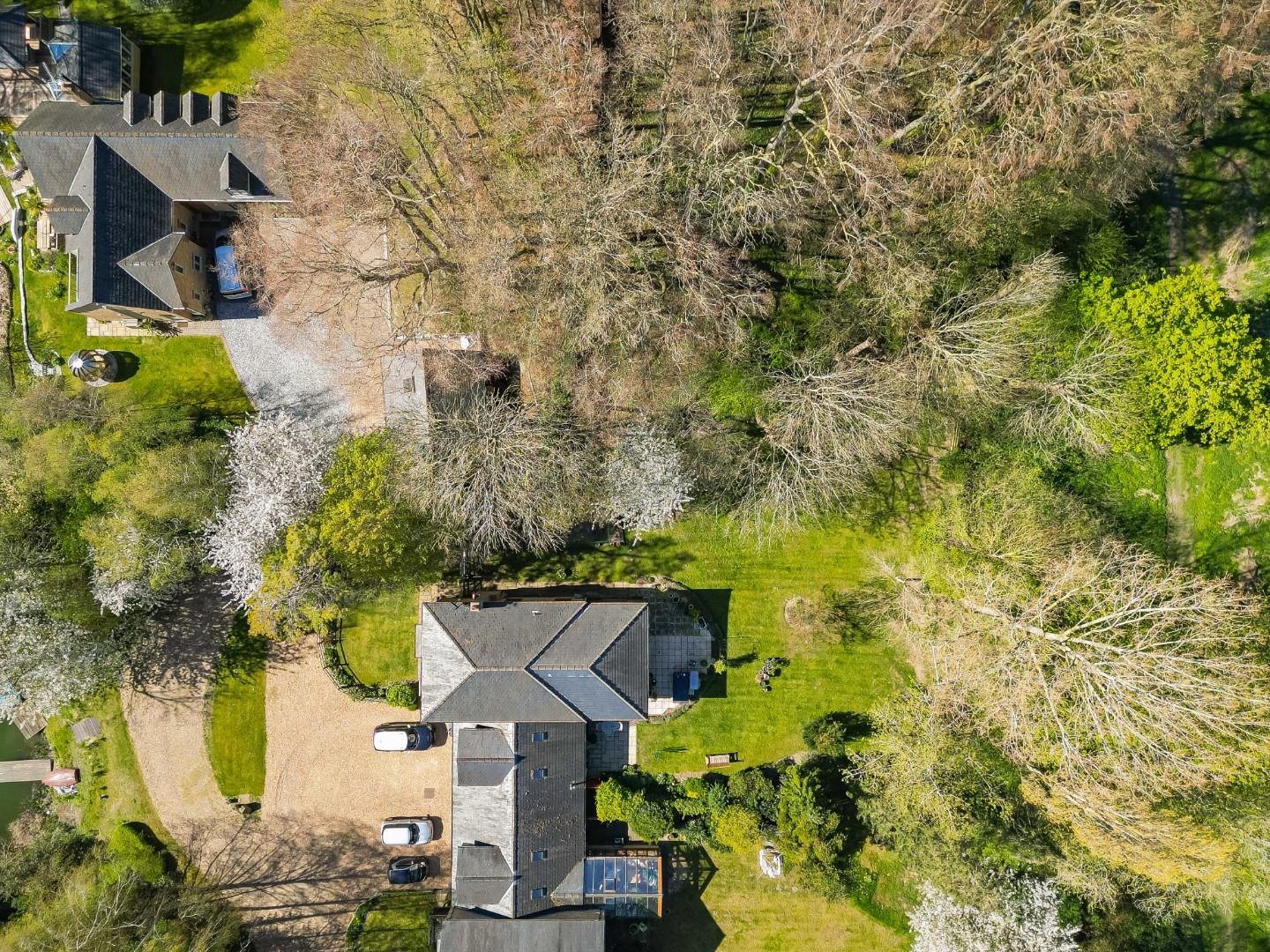 The property makes up an exclusive scheme of just three properties, constructed in the late 1990s and set within a most idyllic setting positioned round around a large six acre lake and woodland. The lake is privately shared by the three dwellings, ideal for fishing, boating or indeed cold water swimming, together with wonderful walks in the surrounding woodland, a haven for wildlife and birds. In recent times, the property has been extended and much improved with bright and spacious accommodation extending to approximately 2350 sqft.