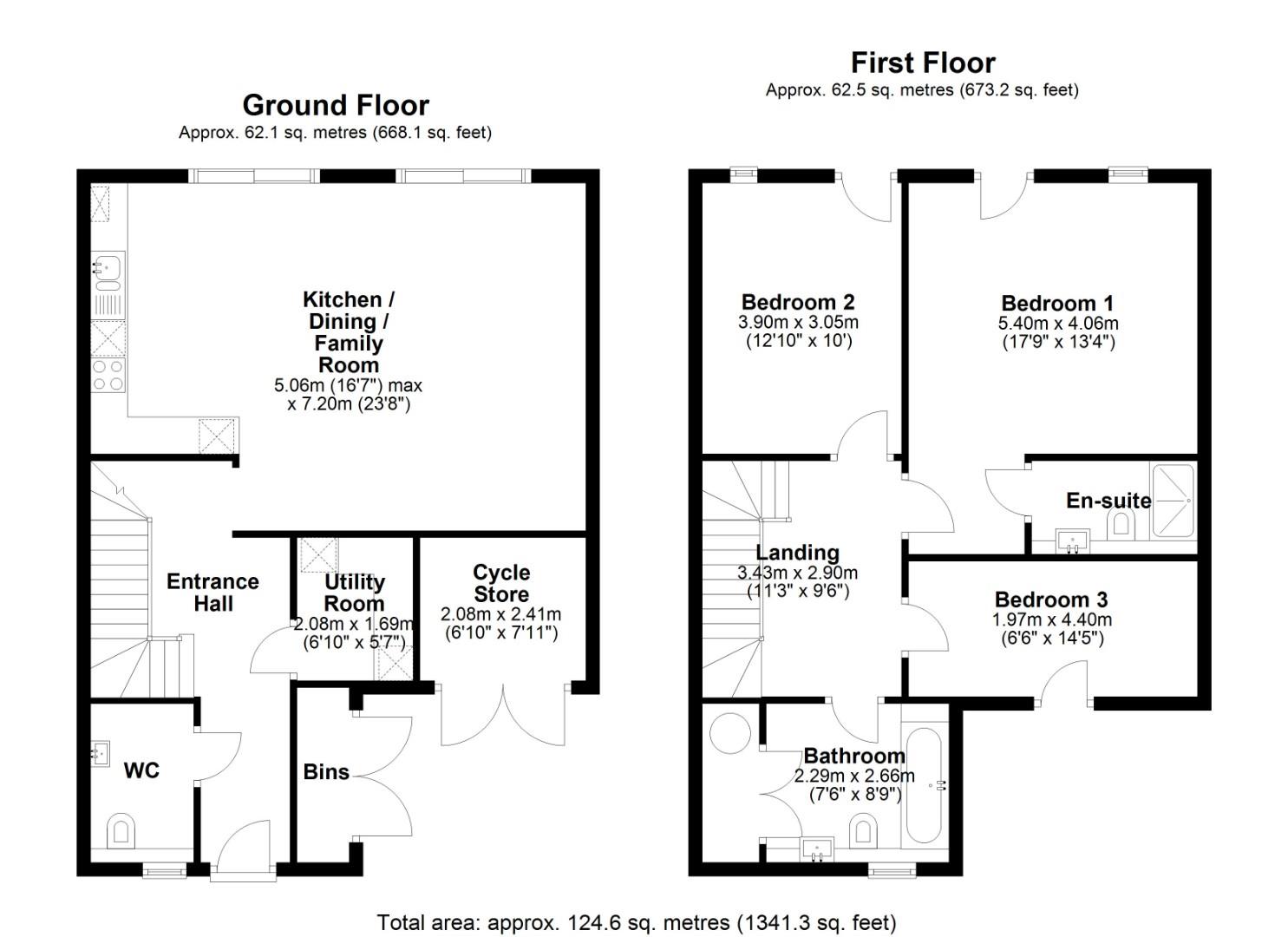 The first-floor accommodation comprises three good-sized bedrooms, two fitted with built-in wardrobes and the principal bedroom benefiting from an ensuite shower room, the family bathroom is fitted with a three-piece suite, with a large storage/linen cupboard.