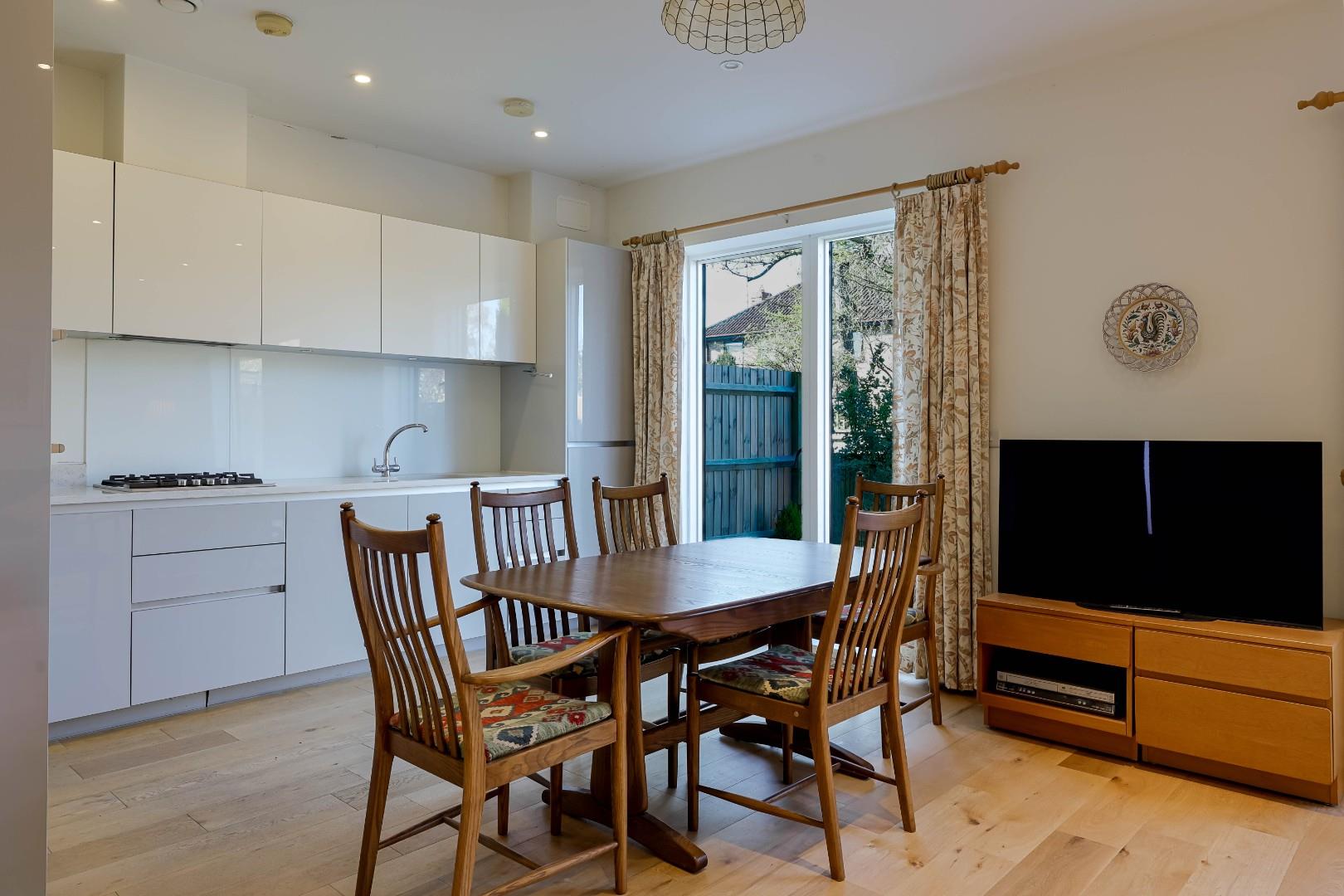 Outside, there is a south-west facing garden of about 28ft x 32ft, mostly laid to lawn with a large deck for entertaining. There is also private parking for one car, a secure bike store, a garden shed and bin storage.