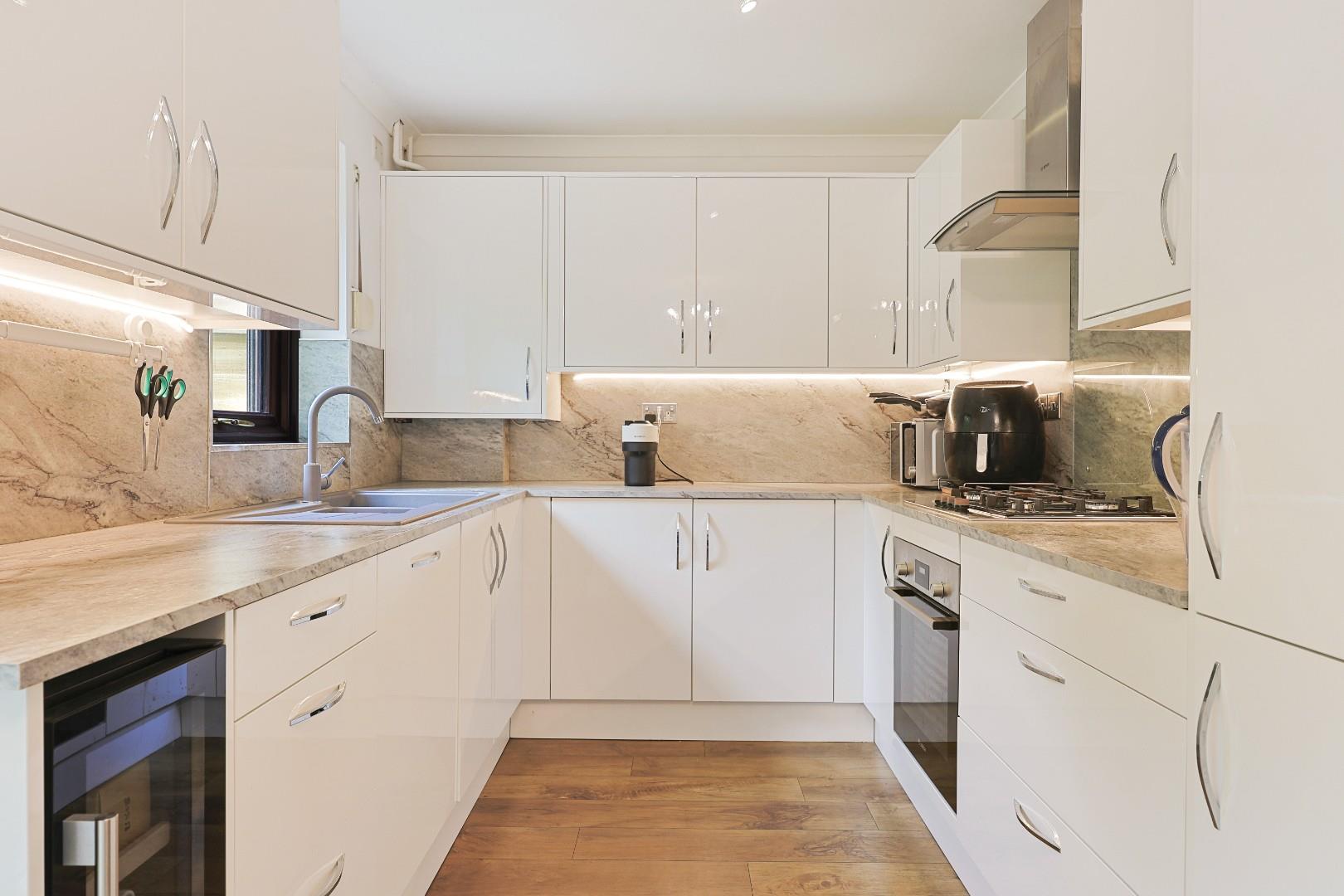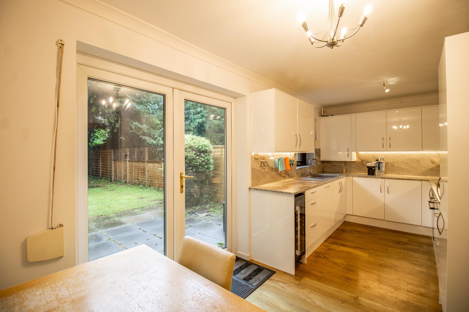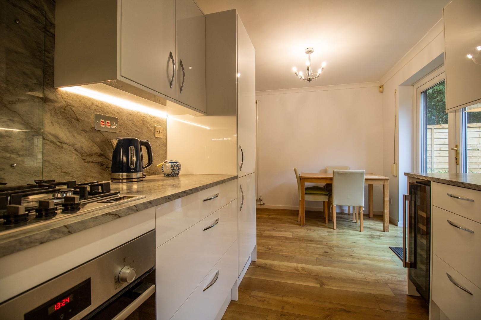 The property forms part of a small terrace and is set back behind an established front garden. Upon entering the property, an entrance hall provides access to the garage and leads to a WC, inner hallway with a staircase and a useful built-in storage cupboard and a full-width, open plan kitchen/dining room. The well-equipped kitchen has a matching range of contemporary units and drawers, attractive worktops with matching upstands, an inset sink and a range of integrated appliances. The dining area has glazed double doors opening to the garden.