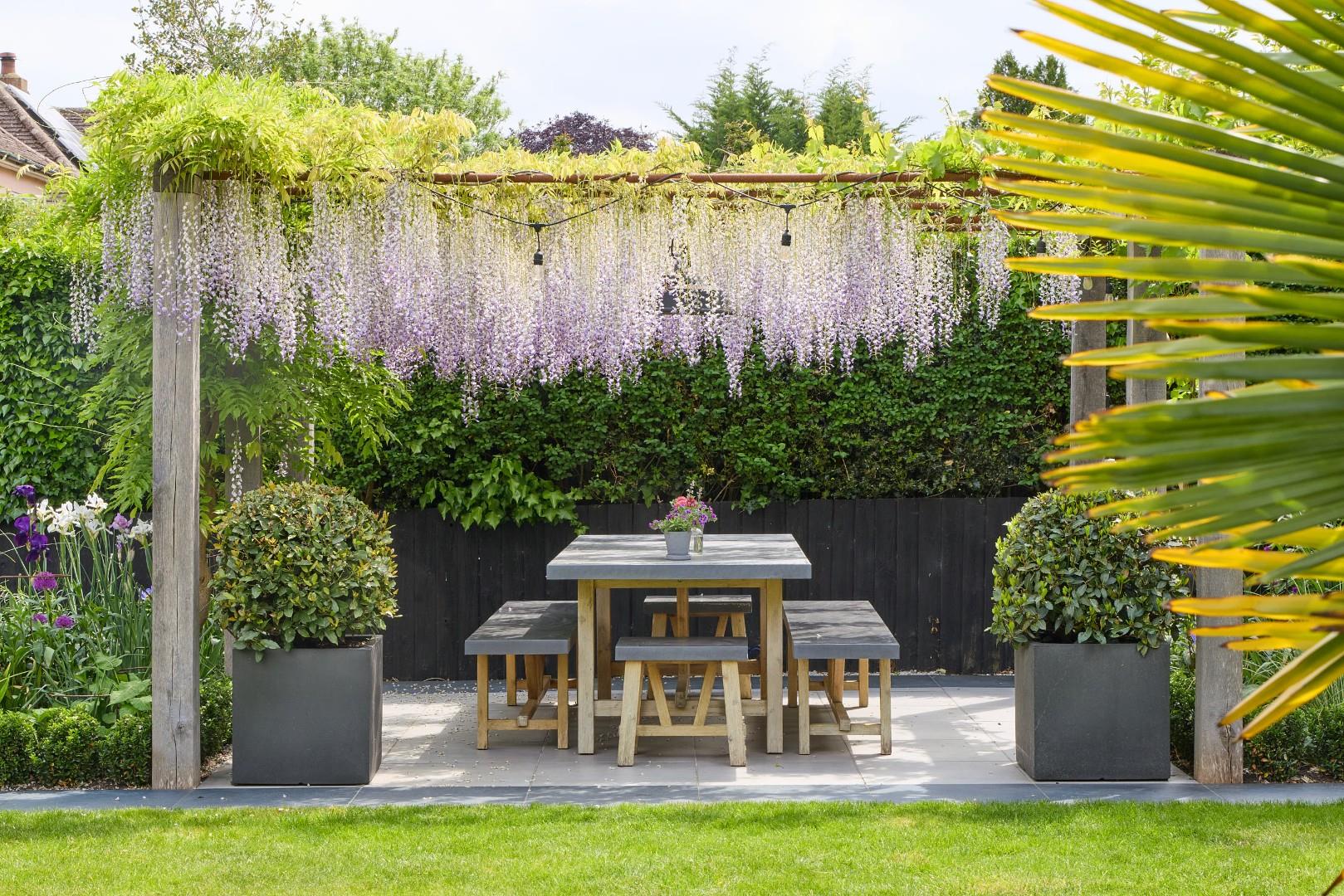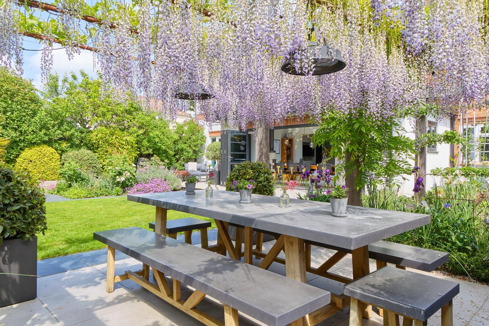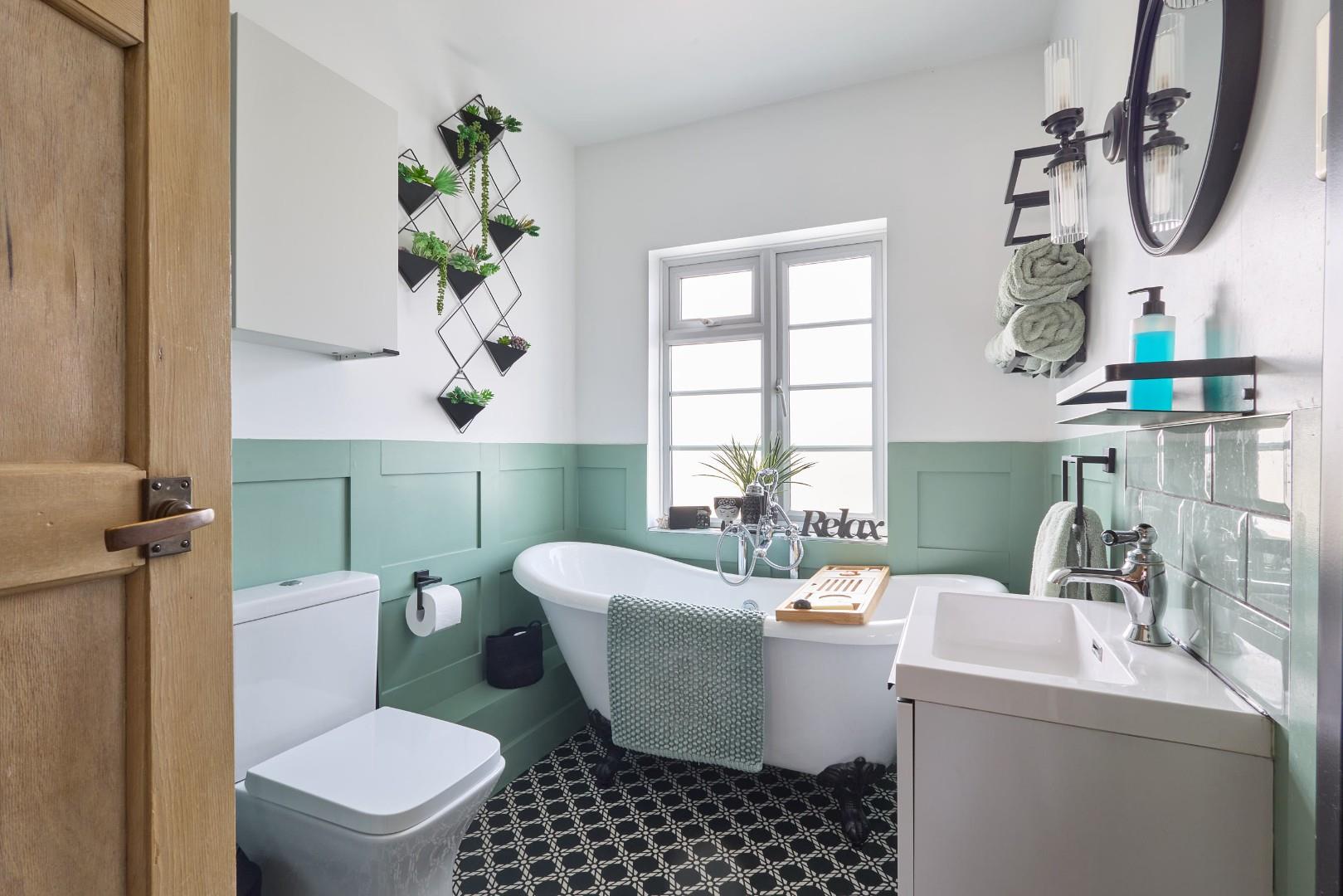 Outside, the rear garden provides a high degree of privacy and showcases inspiring garden design at its best, as featured in the May edition of Ideal Home magazine. Coloured-themed borders surround a manicured lawn and connect to separate seating areas, a kitchen garden with irrigation system, a heated dining area and a Zen Garden. A statement water feature is prominently positioned to the rear of the garden and there is gated access, and an attractive timber shed with a ‘Dutch’ roof design.