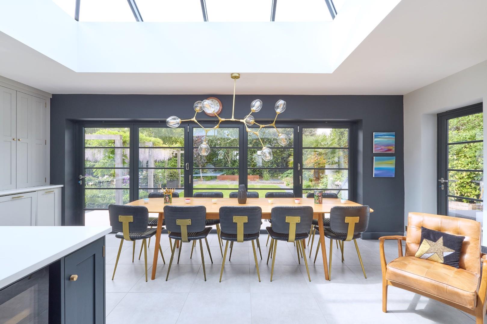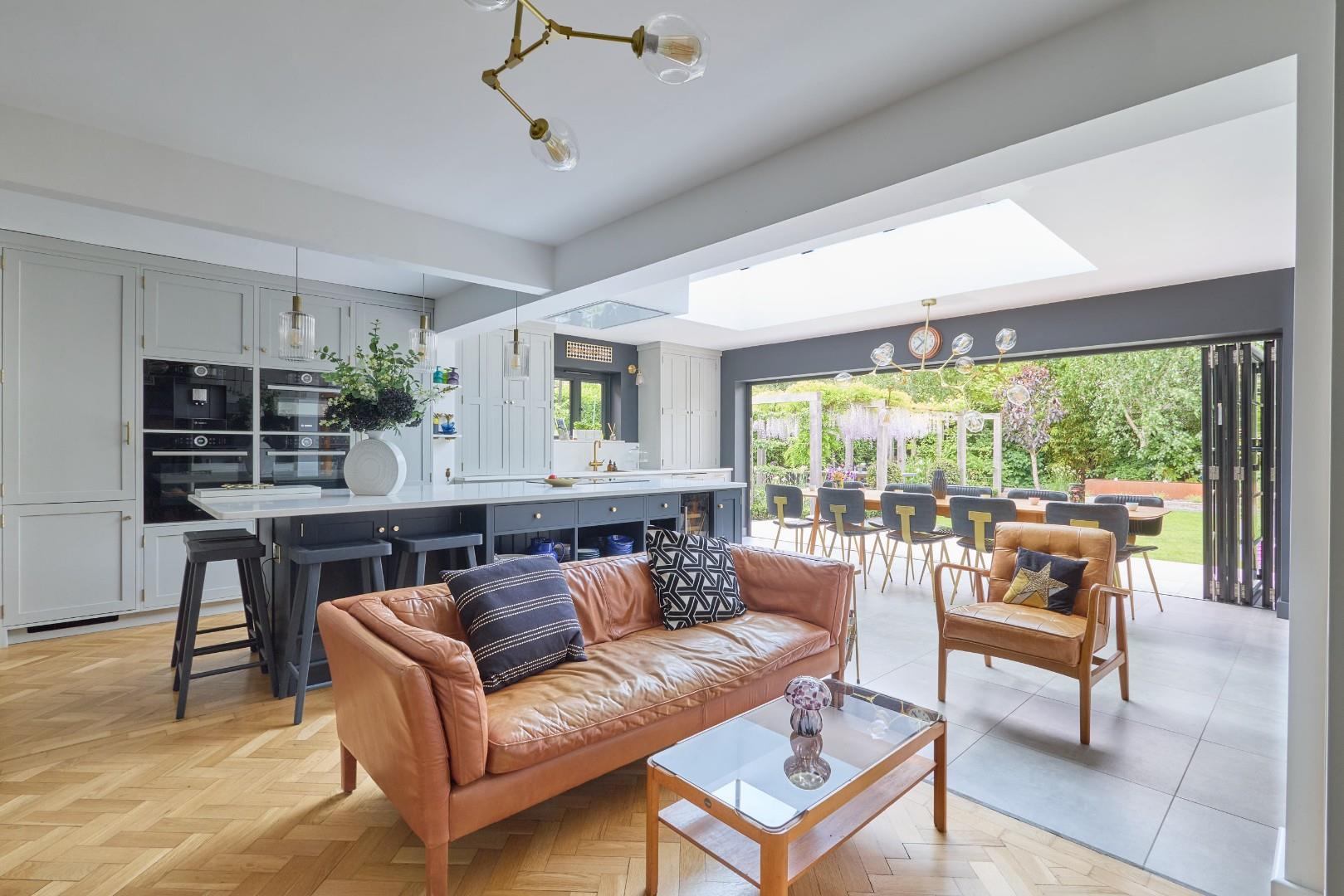 - Impressive open plan kitchen/dining/family room with Origin bifold doors and Hase wood burning stove