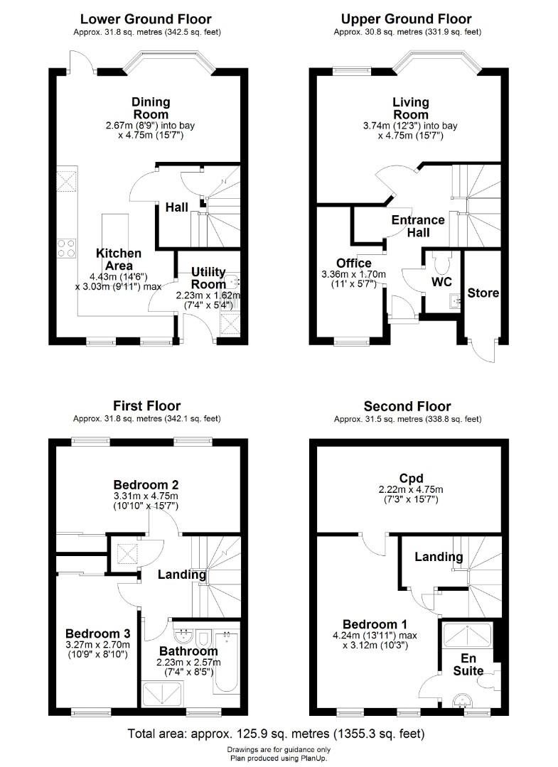 The accommodation is arranged over four immaculately presented floors, extending to 1355 sqft, providing flexible living/home working spaces with recent upgrades to both bathroom suites.