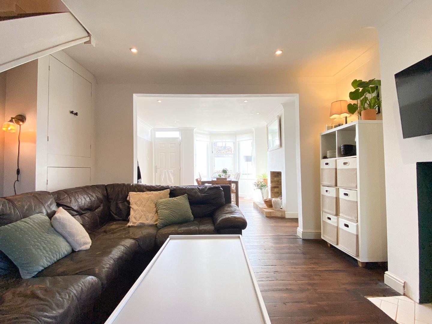 Upon entering the property to the front, you are greeted by one larger reception space which is flooded with natural light thanks to the large bay window to the front. Previously two rooms, the reception could be easily divided into two reception rooms once more with the addition of a stud partition. Off the rear of the property is a kitchen with storage at both eye level and base level with access into the rear garden and a ground floor shower room adjoining.