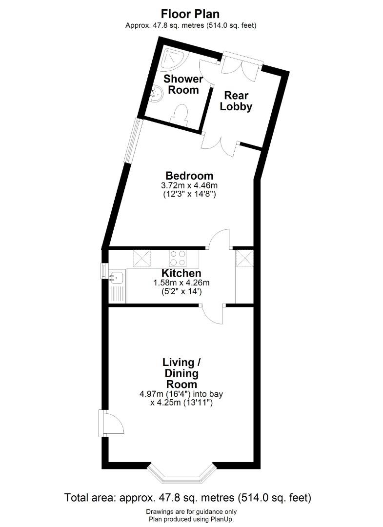 The property comprises of a spacious lounge area with a bay window to the front, a galley style kitchen with ample work top space and generous storage at both eye level and base level. Completing the property is a double bedroom and a separate shower room with a single enclosed shower, low level WC and a pedestal sink.