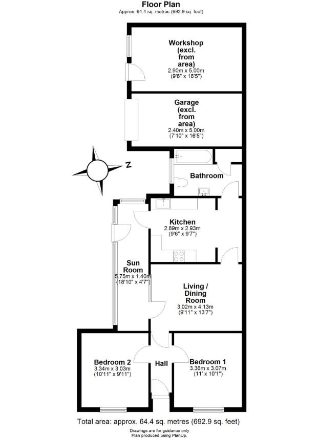 Requiring improvement throughout, this bungalow offers potential to be extended/re-developed subject to the relevant consents being granted. In brief the property comprises of an entrance hallway, two double bedrooms, a living/dining room, a kitchen and a bathroom. The property has a brick-built garage and a separate workshop adjoining.