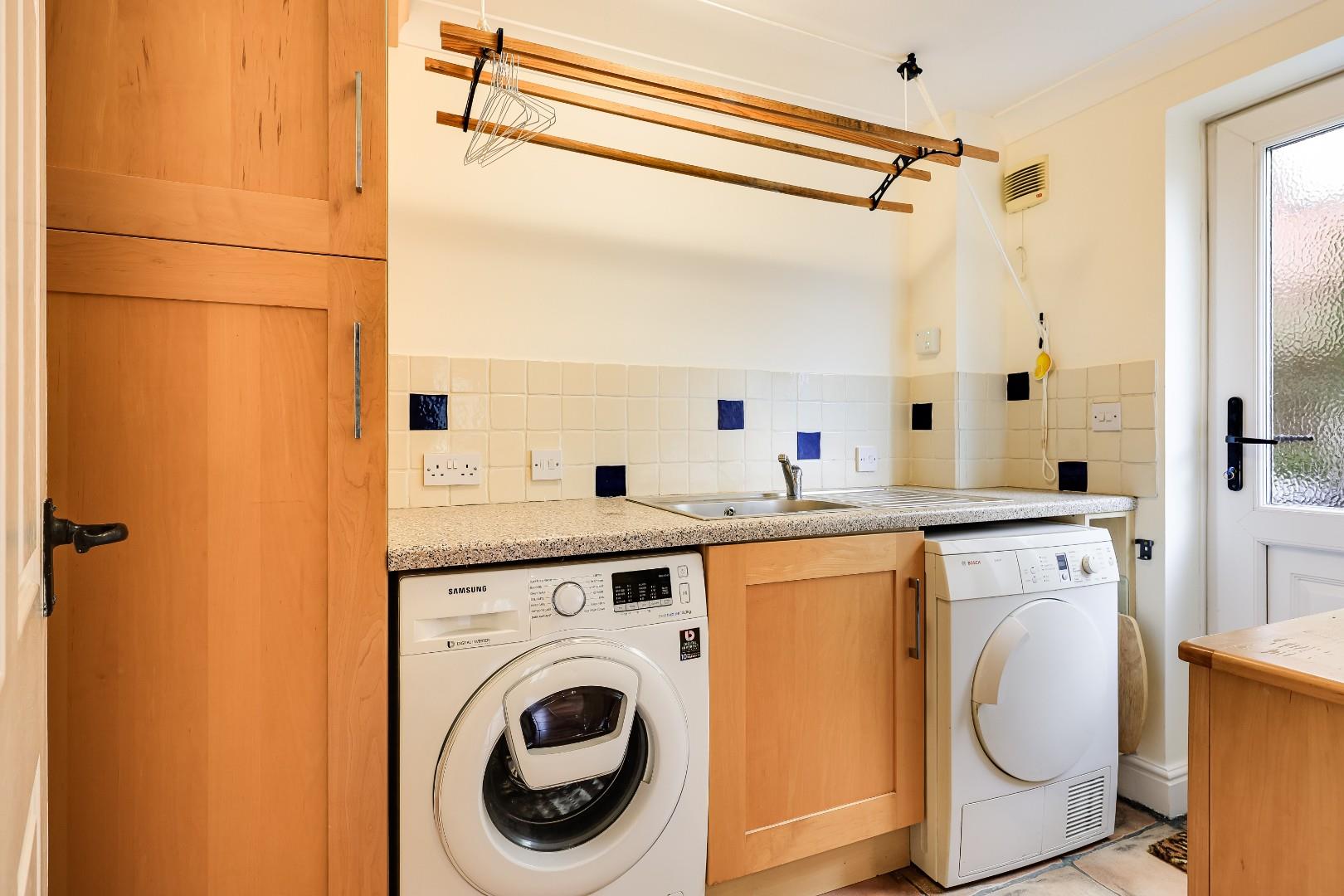 The accommodation comprises a generous and welcoming reception hall with ceramic tile flooring, stairs to first floor accommodation, storage cupboard under and a cloakroom/WC just off. There are two large reception rooms and these include a bay windowed dining room and a sitting room with feature open fireplace and French doors to the garden, plus there is a good sized study with fitted work station and book shelving. The kitchen/breakfast/family room is the heart of this beautiful home and a capacious space fitted with attractive cabinetry, granite working surfaces with matching central island, inset ceramic one and a half sink unit with mixer tap and drainer and a range of integrated appliances. These include; a four ring induction hob, oven plus a combination oven, full fridge and a dishwasher. Adjacent is a handy utility room with matching cabinetry, fitted working surfaced with inset single sink unit with mixer tap and drainer and space for a washing machine and tumble dryer.
