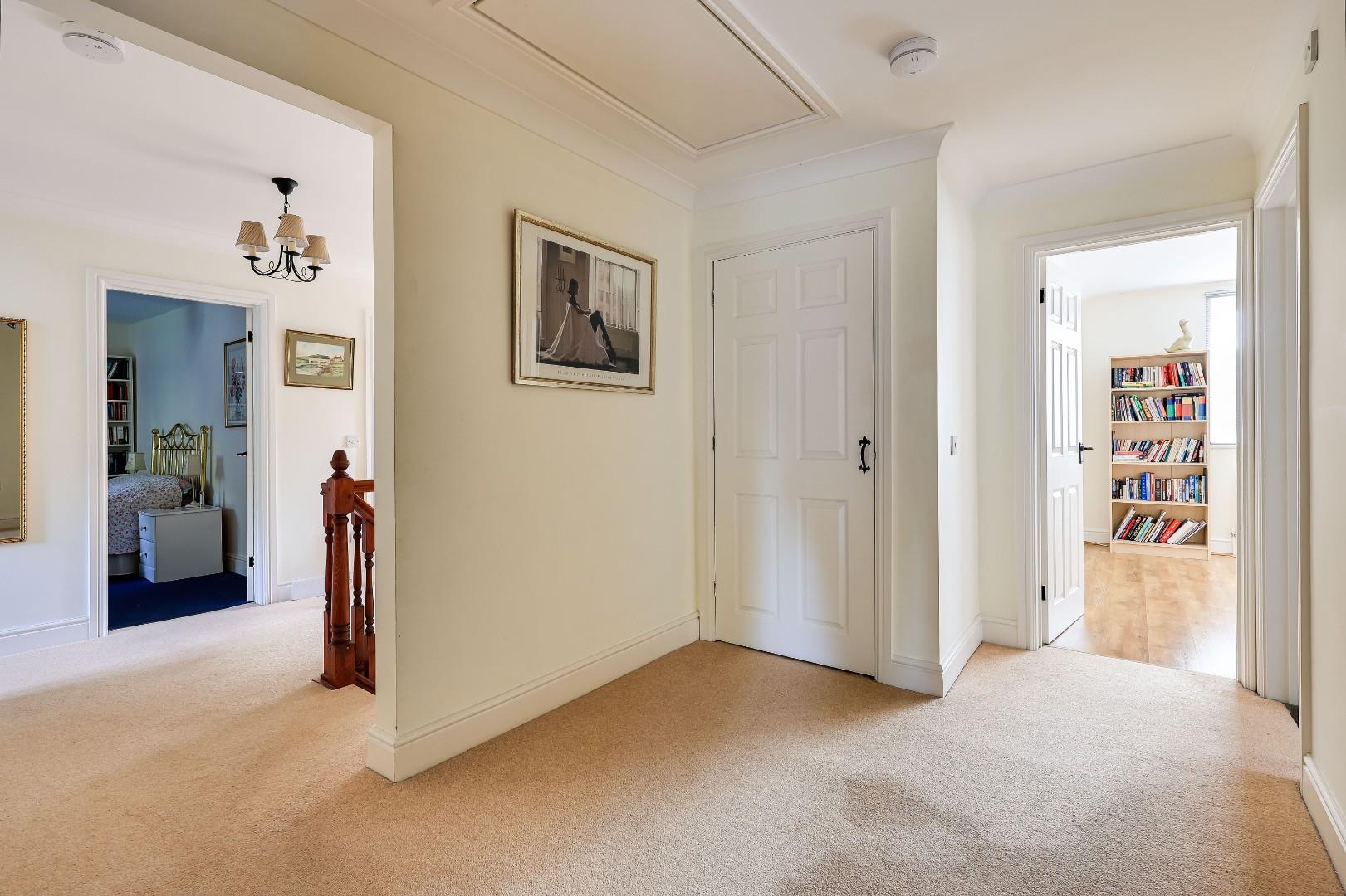 Upstairs, there is a generous galleried landing with an inner landing that boasts an airing cupboard and roof space access. There are five bedrooms, four of which are large double bedrooms, all with fitted wardrobe cupboards. There is a luxury family bathroom with both bath tub and walk-in shower and a luxury en suite to the master bedroom.