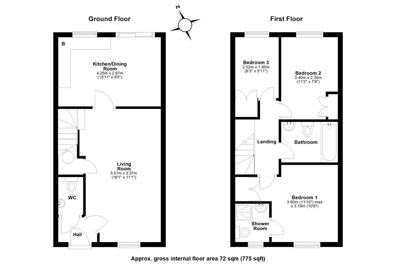 Having been constructed by Bovis Homes in 2011, this three-bedroom home measures 775 sqft / 72 sqm and provides accommodation over two levels.