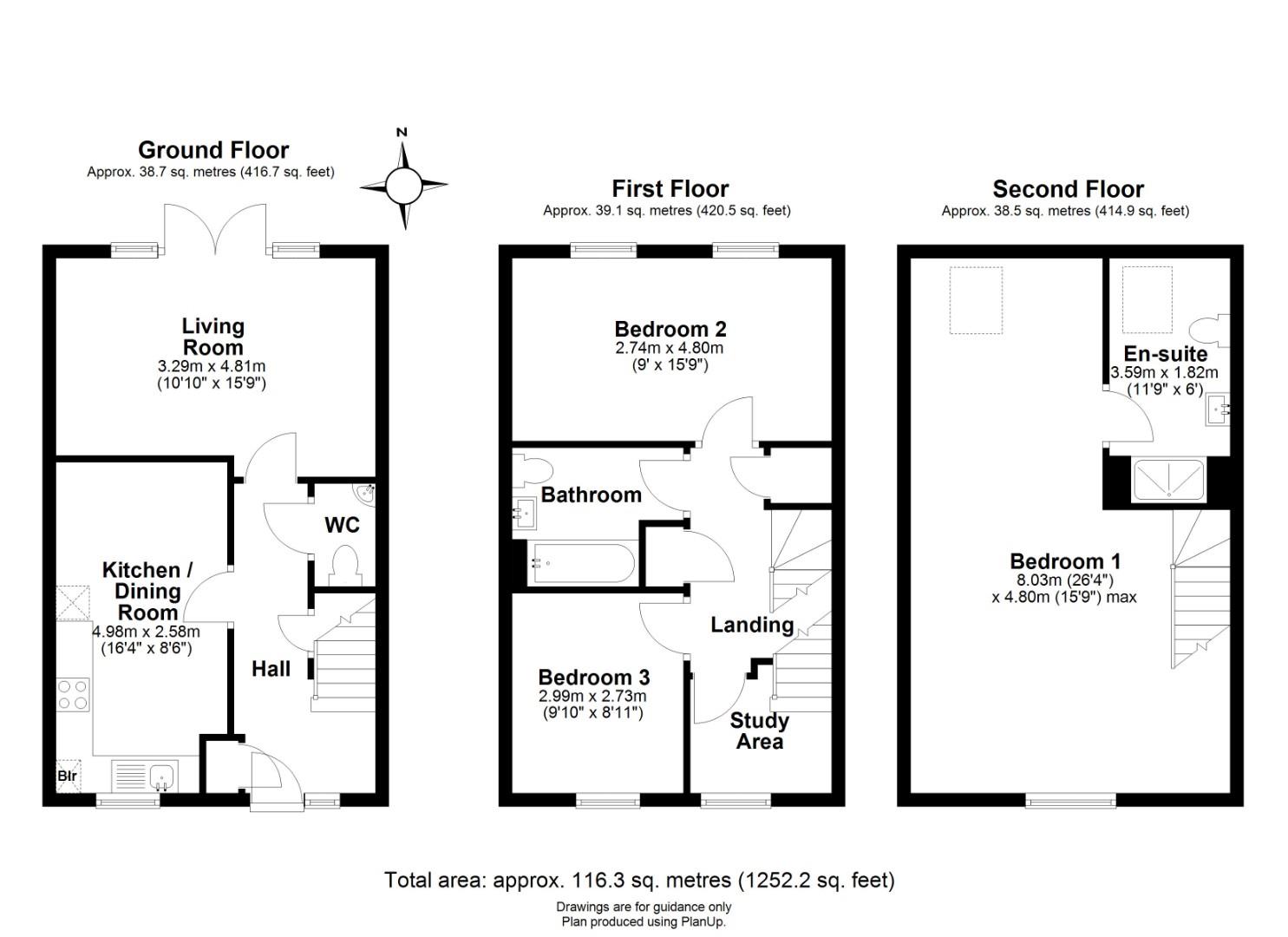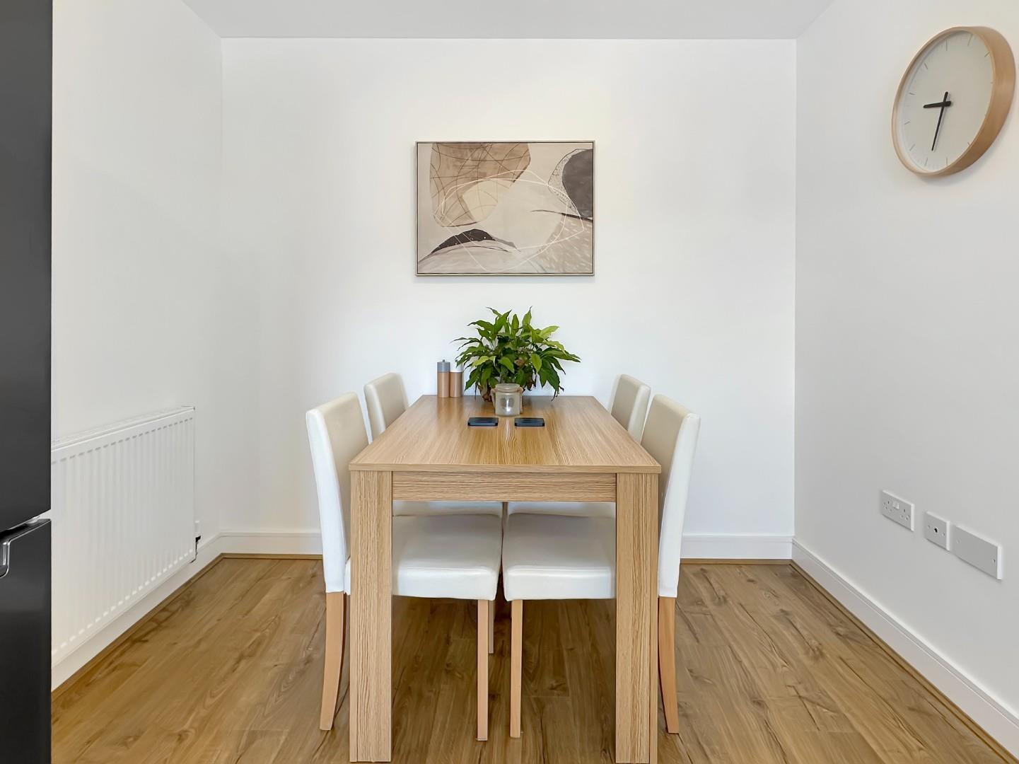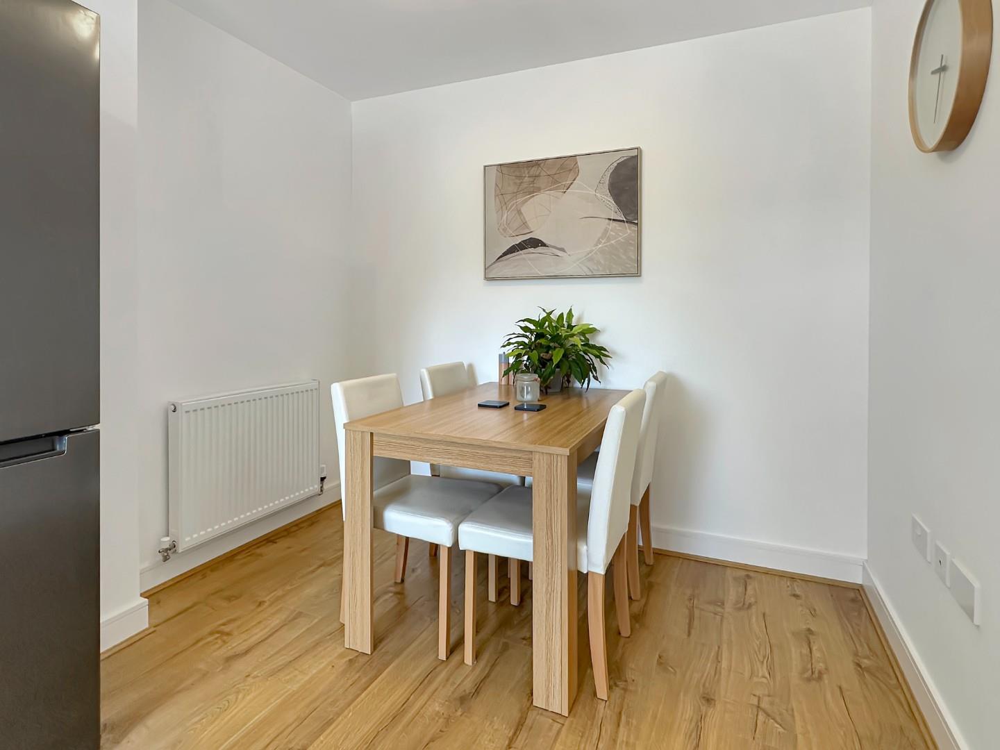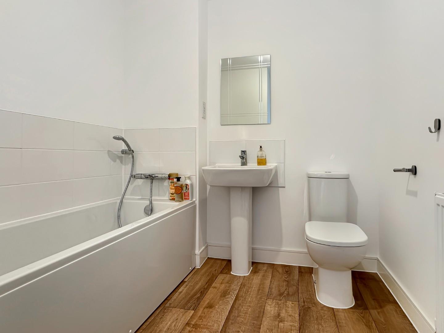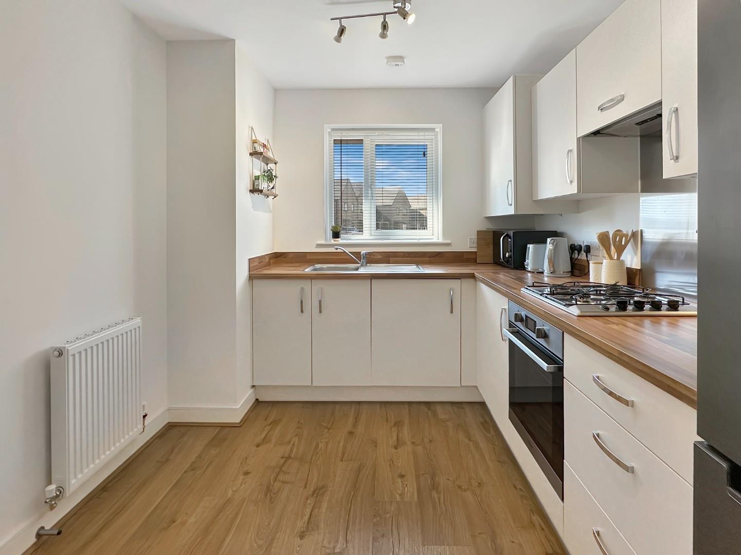 Having been constructed in 2021, this semi-detached town house measures 1252 Sqft / 116 Sqm and provides generous living accommodation over three levels. To the ground floor the property comprises of a spacious entrance hall with built in storage cupboard and WC adjoining, a kitchen/dining area and a spacious living room with double doors opening onto the rear garden. The kitchen/dining area has generous levels of storage at both eye level and base level, a wood effect worktop and integrated appliances which includes a fan assisted oven, a gas hob, extractor and a washing machine.