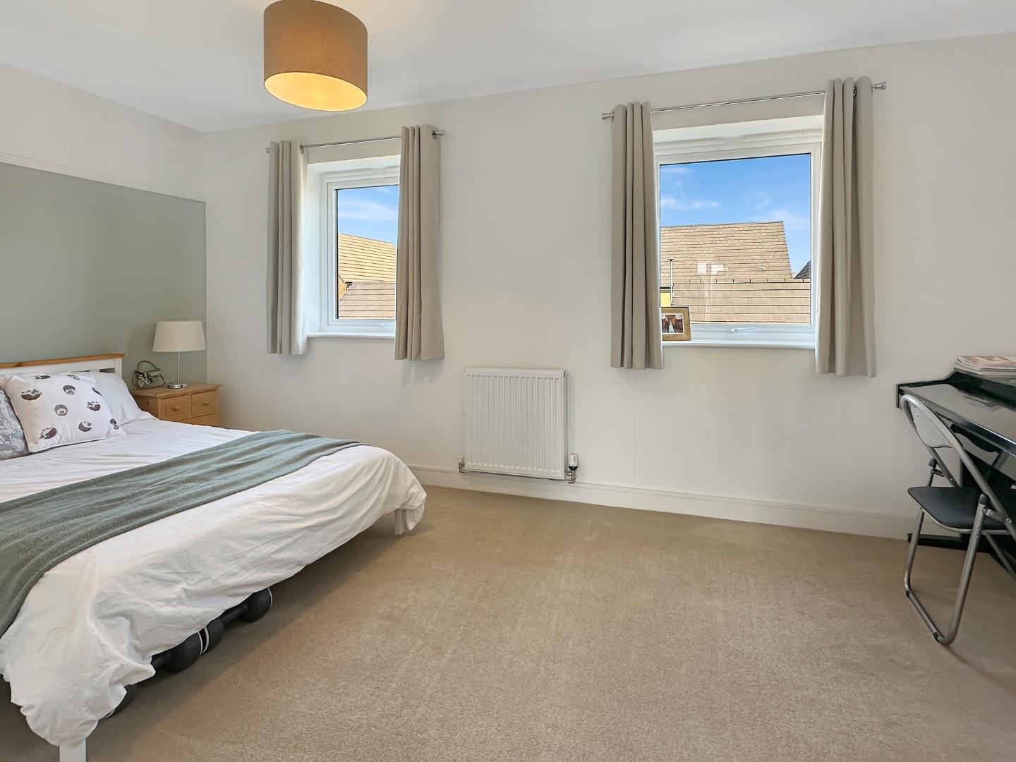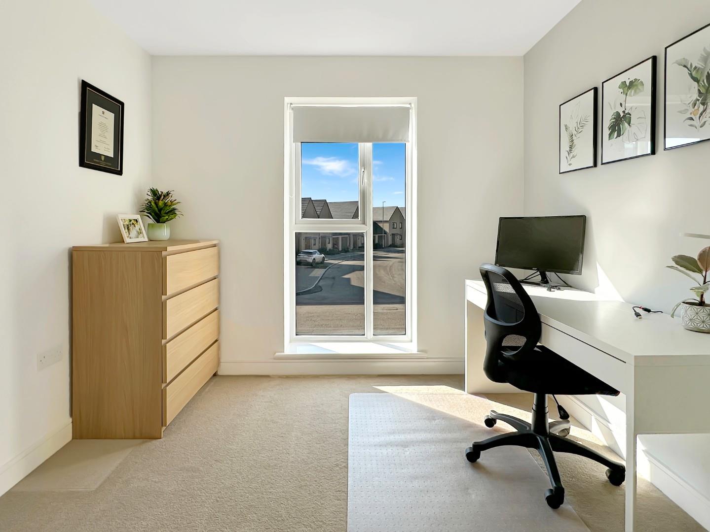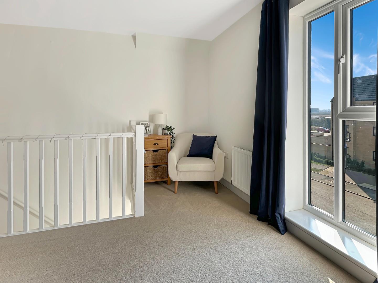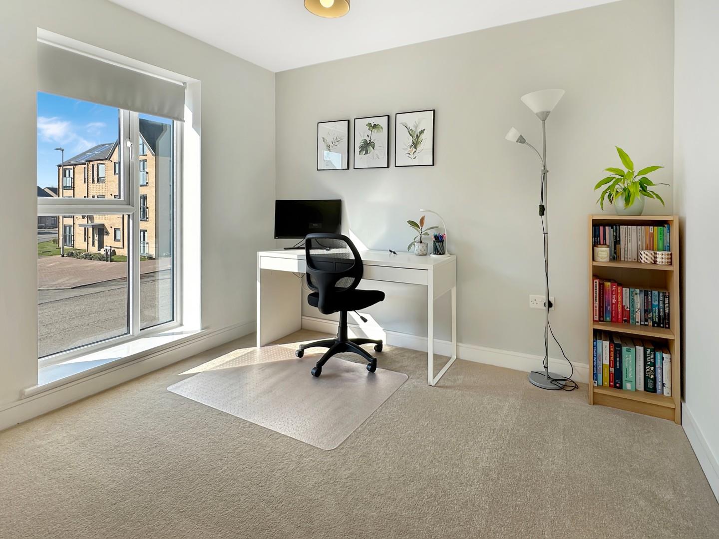 To the first floor are two generous double bedrooms, a study which incorporate the stairs leading to the second floor. The bathroom benefits from a white bathroom suite which includes a panelled bath with a mixer tap, a pedestal sink unit and a low-level WC.