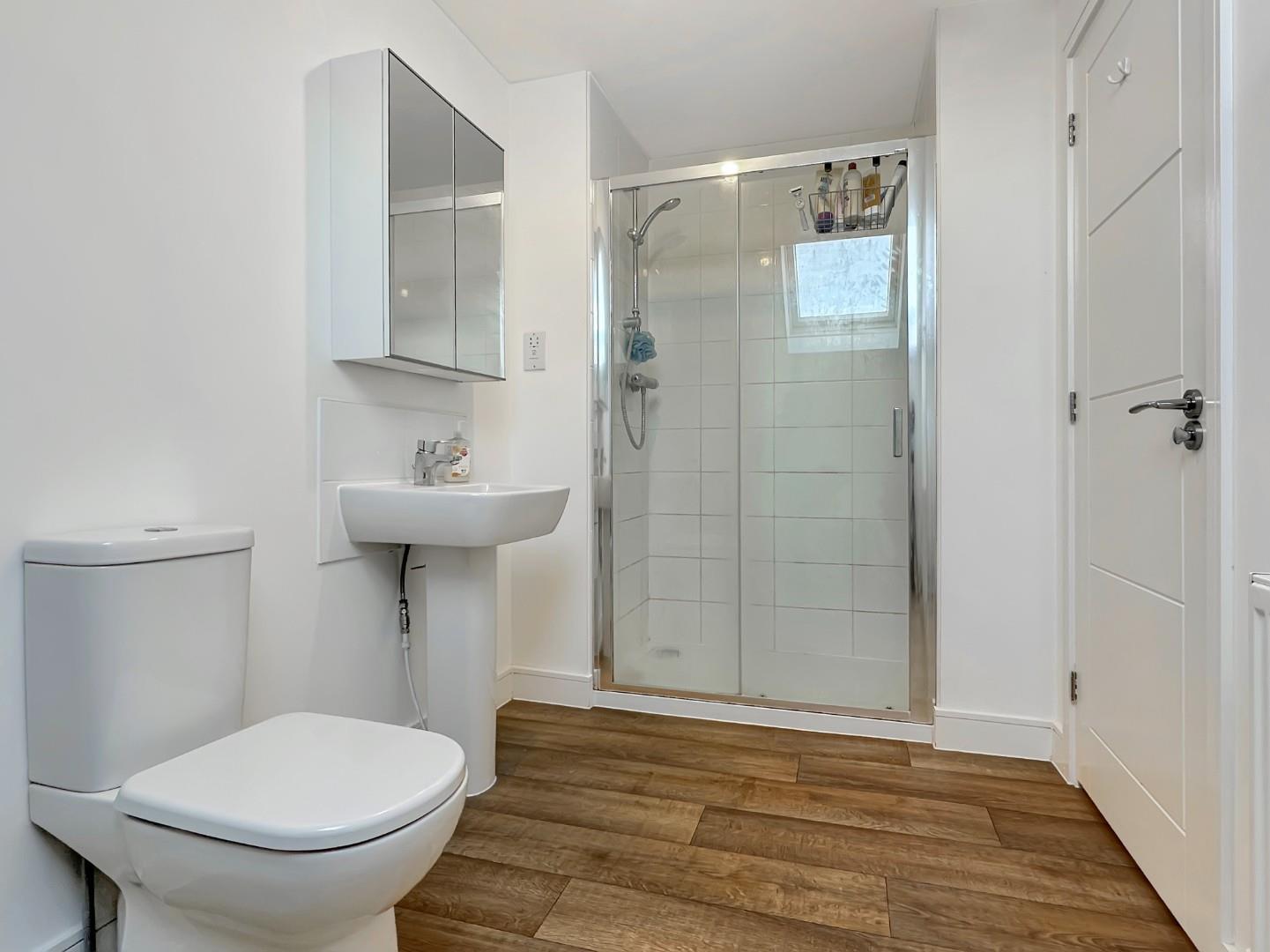 To the second floor you will find the enviable master bedroom suite which spans the full length of the property. The master bedroom benefits from an en-suite shower room and benefits from large levels of natural light thanks to a floor to ceiling window at the front and velux window to the rear.