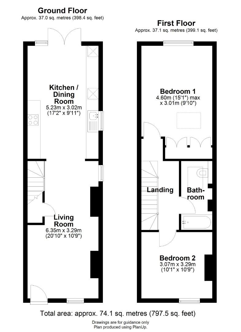Upstairs, there are two good sized doubles and the family bathroom. Bedroom 1 located at the rear is a generously proportioned room with built in wardrobes, a Velux and a window over looking the rear., whilst bedroom 2 has a large sash window and an exposed brick chimney breast. The family bathroom has been fitted with a modern three-piece suite with a drench shower over the bath and solid wood shelving. The loft space can be accessed from the landing and as it was seen downstairs, wood floors flows throughout the upstairs.