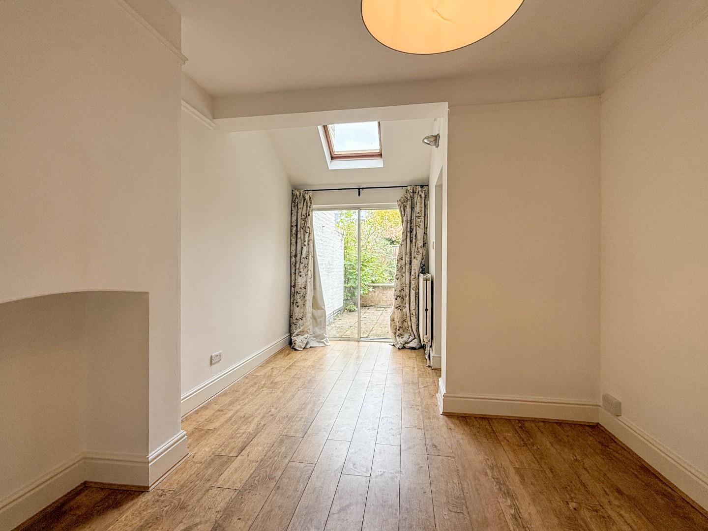 The accommodation comprises a reception hall, front sitting room with original wood floorboards, an attractive period fireplace and a sash window overlooking the front aspect, an extended dining room with a Velux window and access to the rear garden via sliding doors, a well-equipped kitchen providing a range of matching units and drawers, solid wood working surfaces, an inset sink and drainer, space and plumbing for freestanding appliances, a terracotta tiled floor and access to the rear garden.