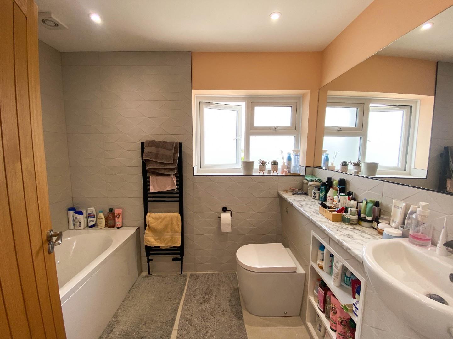 Upstairs, off the landing are three bedrooms, all with fitted wardrobe cupboards, a luxury re-fitted bathroom comprising a closed cupboard WC, wall mounted wash hand basin, panel bath with mains fed shower over and stylish contemporary fitments.