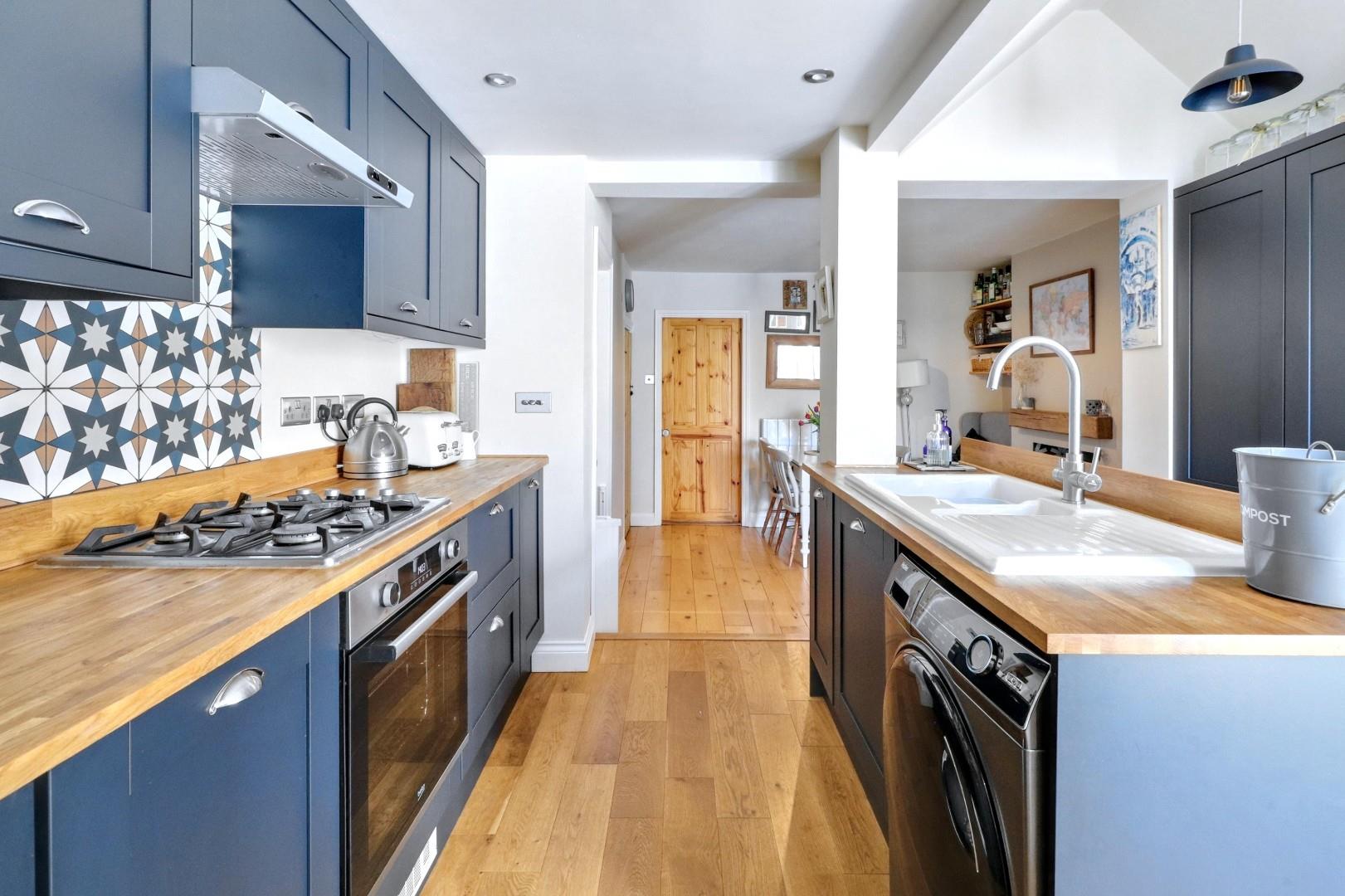 With the original cottages dating from around 1875, this terraced home sits within a beautiful conservation area. The property has been adapted on numerous occasions and provides generous accommodation measuring 727 Sqft /67 Sqm. Upon entering the property to the front, you enter the main living room benefitting from a sash window to the front and a chimney stack with shelving either side. To the rear of property is a large open living space including a dining room with a wood burning stove and a recently replaced kitchen in the extended part of the house. The kitchen has been fitted with shaker style units with wooden work surfaces above, feature splash back tiling, a pantry cupboard and a kitchen island with seating area to one side. Completing the ground floor accommodation is a family bathroom with panelled bath, walk in shower, low level WC and pedestal sink unit. The combi boiler was replaced in 2025 and has a 10 year warranty.