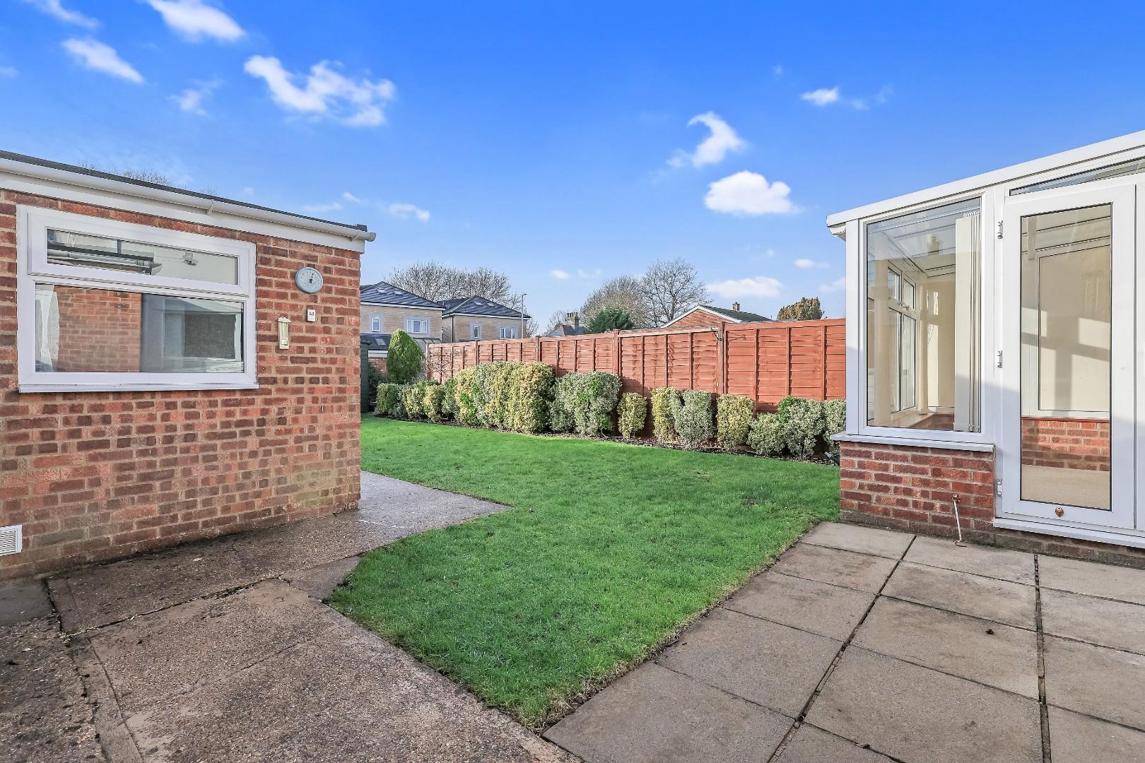 Externally, the property has a front garden, laid to lawn with a pathway leading up to the front. The front garden opens onto the communal green area to the front providing further additional outside space. To the rear of the property is driveway parking and a detached brick-built garage with a recently replaced flat roof. The rear garden has a wall and panel fenced perimeter, is predominantly laid to lawn and has a patio area accessible off both the conservatory and the utility room.