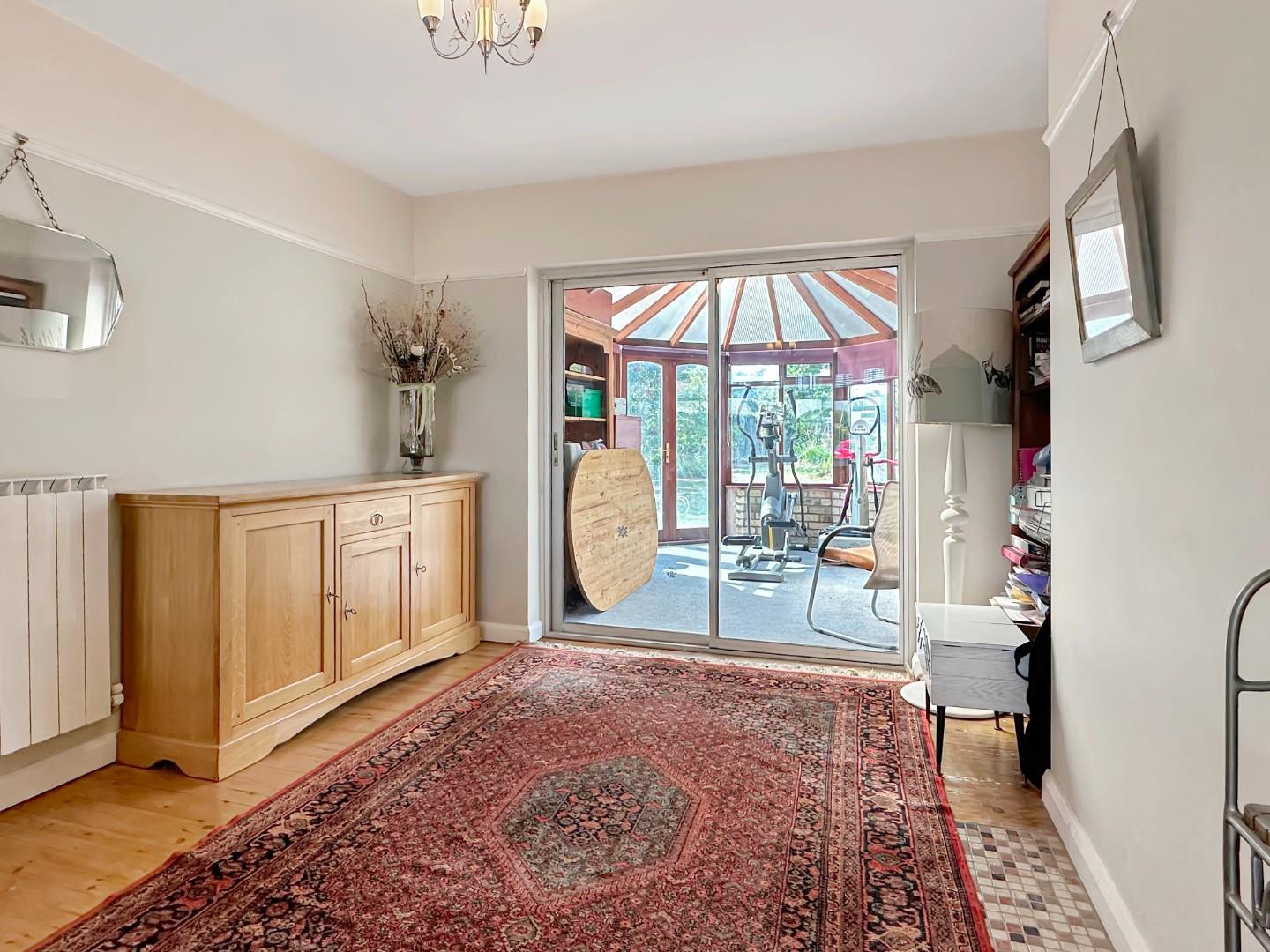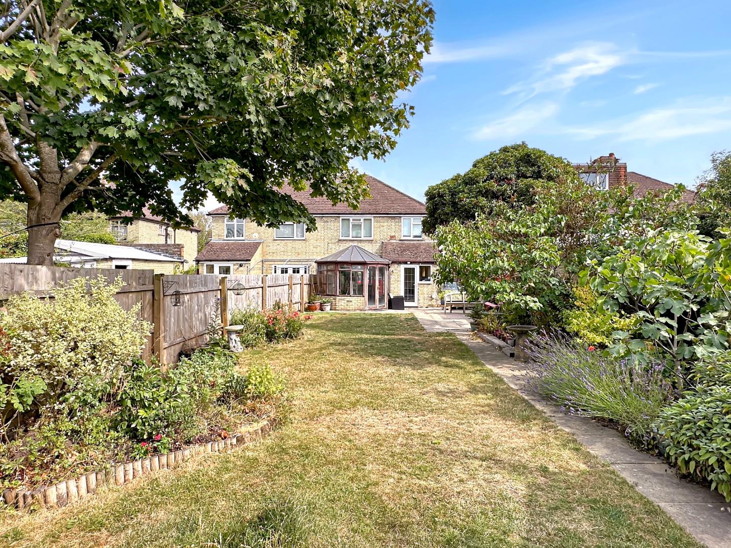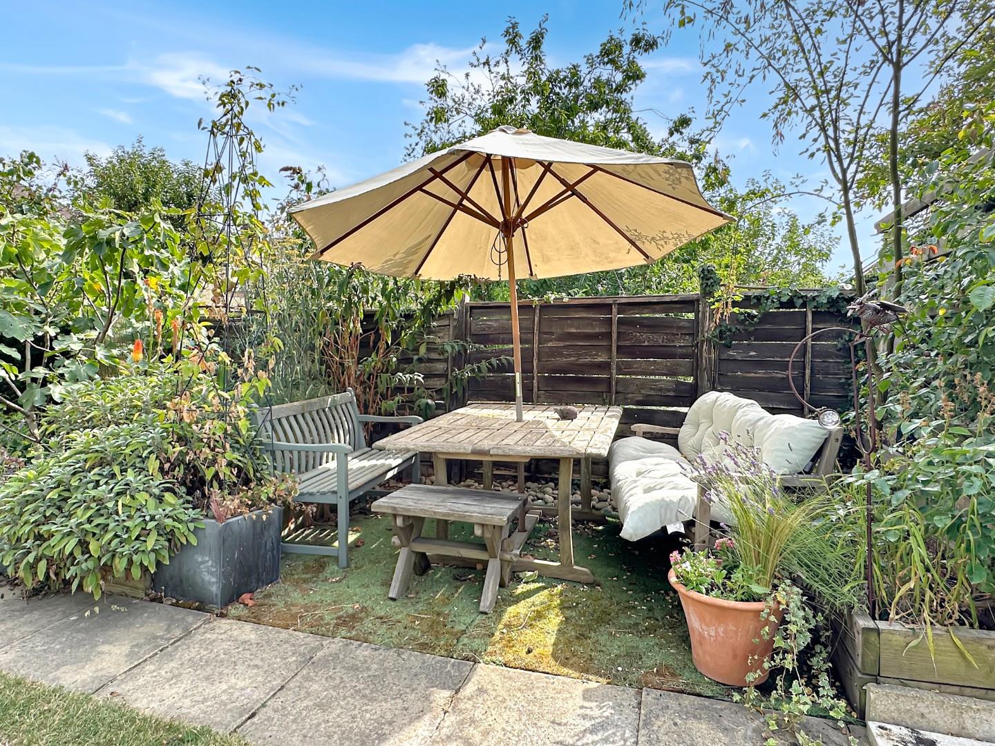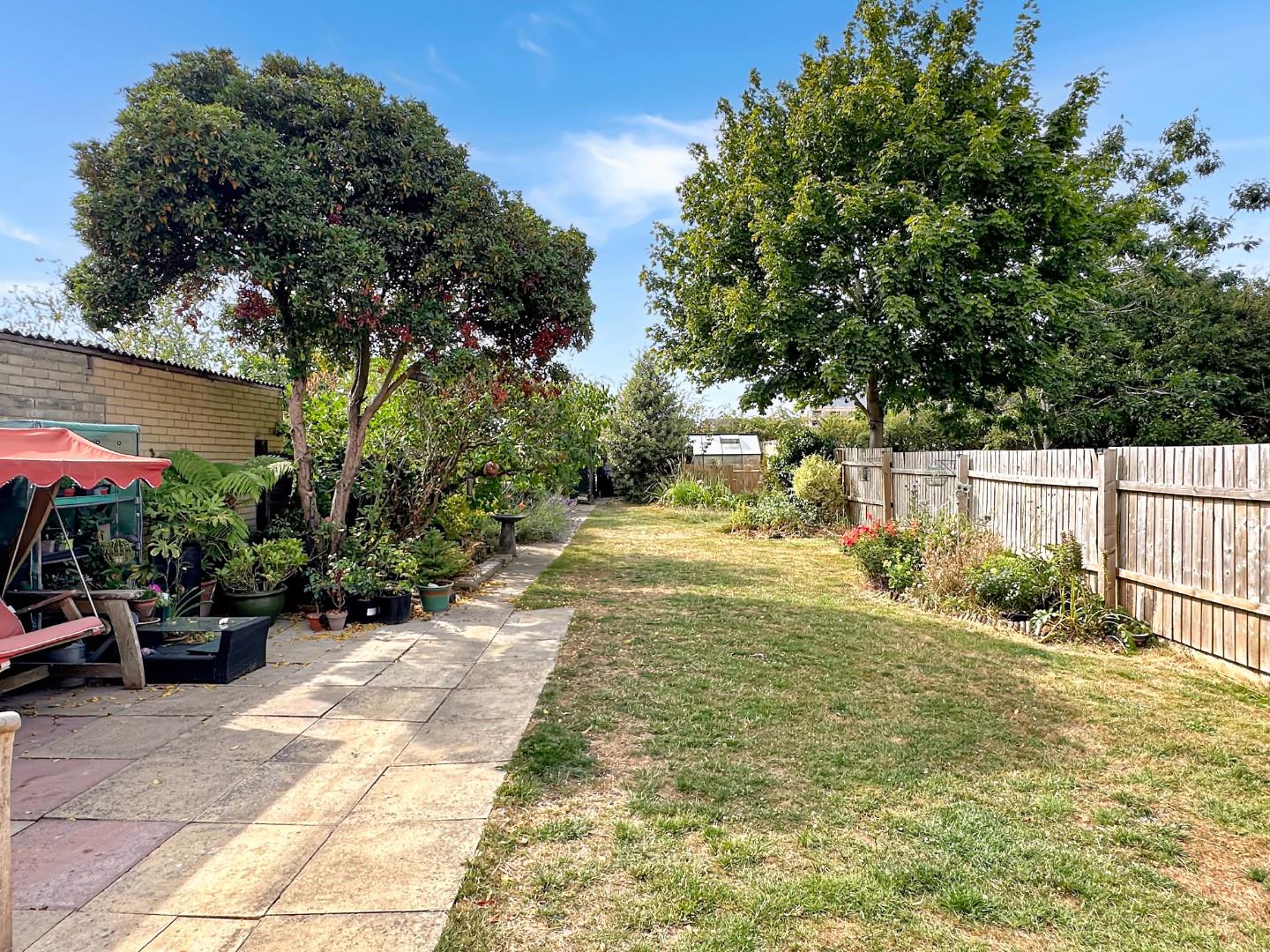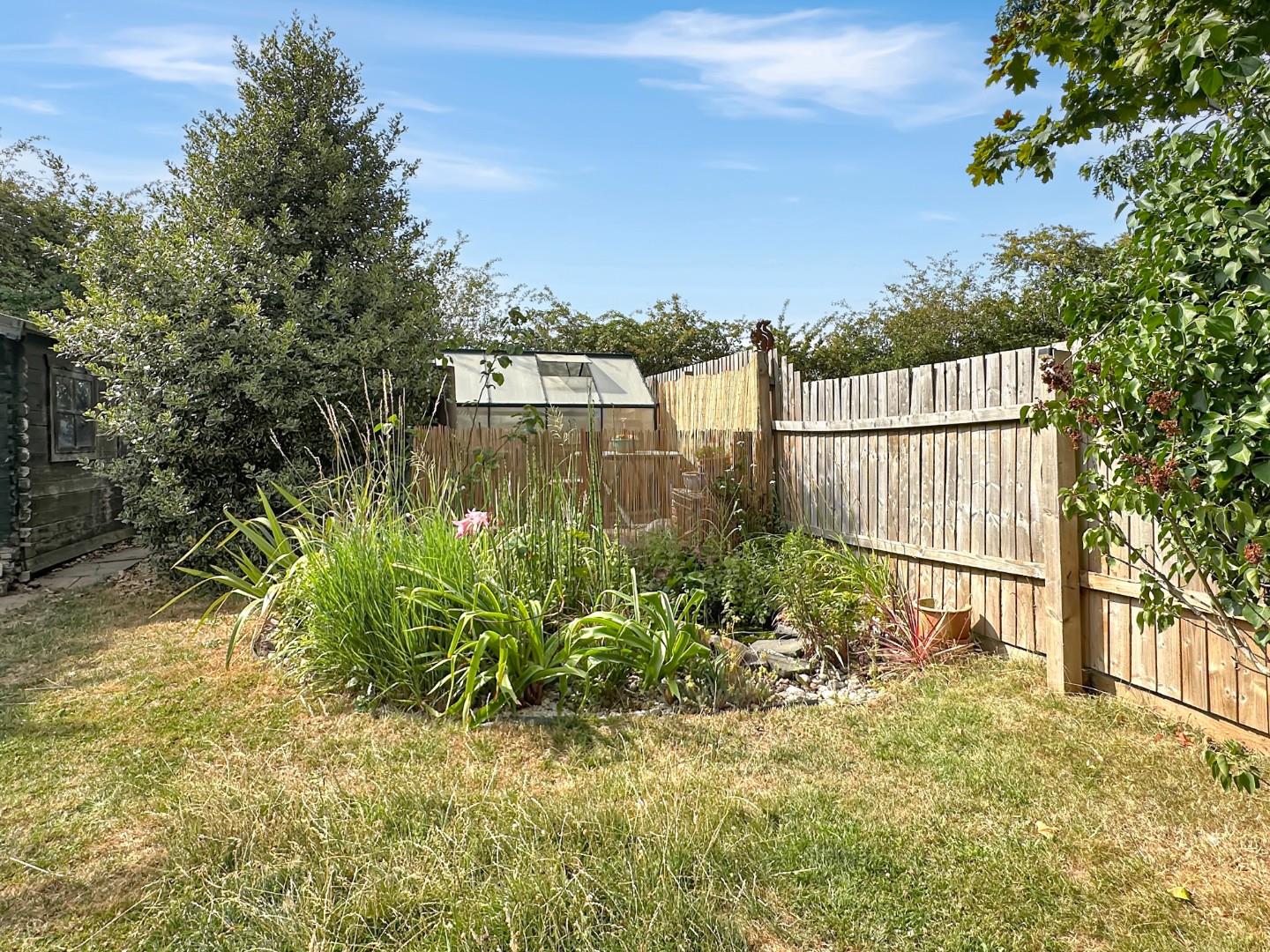 Outside, a large and established rear garden provides two paved seating areas, is predominantly laid to lawn with established borders of various plants and shrubs and wildlife pond. There are useful timber storage sheds and a greenhouse.