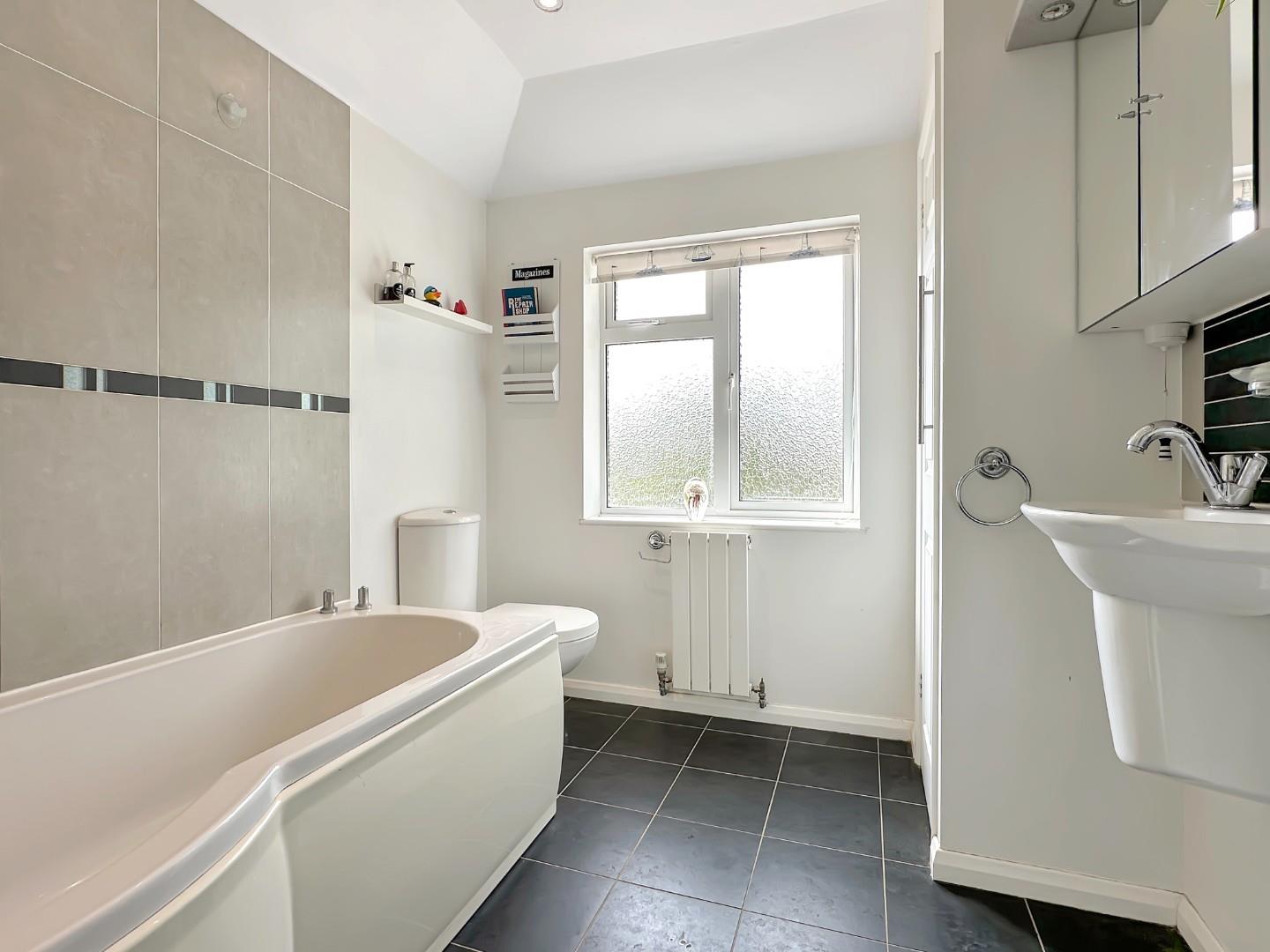 Upstairs, a landing area leads to a family bathroom suite and three bedrooms. Bedroom one has a large bay window and provides ample built-in wardrobes.