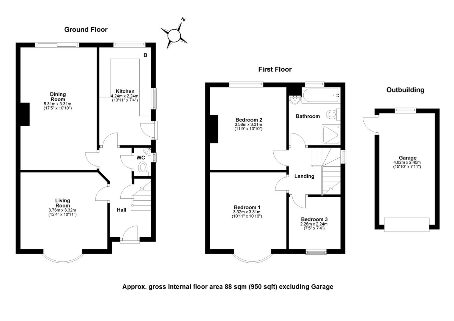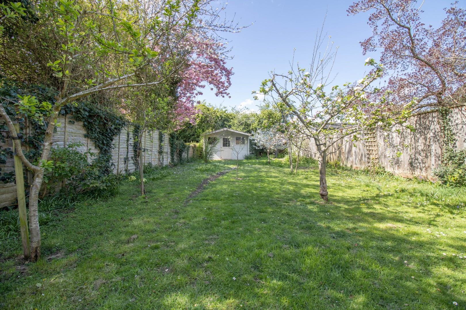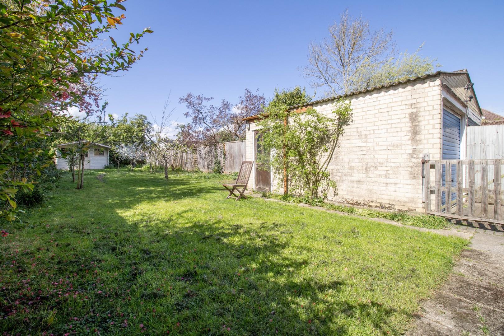 Outside the front of the property has driveway parking and is partially enclosed by a picket fence. A side gate leads to the spacious rear garden and a single garage which measures 15’10" (4.5m) x 7’11" (2.13m). The garden is principally laid to lawn and stocked with a variety of established trees. There is a summerhouse at the foot of the garden and the whole is enclosed by fencing.