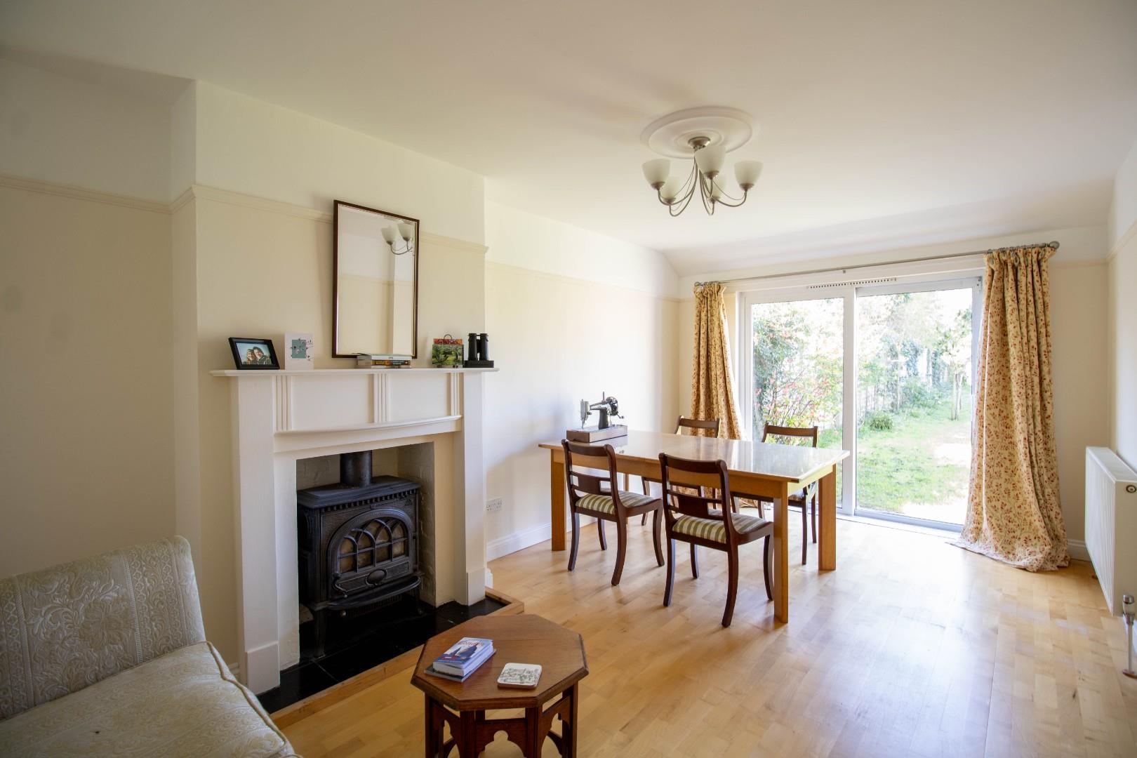 On the ground floor is an entrance hall with space for coats and footwear, has access to a cloakroom W.C and stairs leading to the first floor. There is a bright bay-fronted living room with pleasant views over a well-tended front garden. The dining room has a wood-burning stove, contrasted by a real wood surround with a large sliding door to the private rear garden. The kitchen has been fitted with a modern range of units and includes various integrated appliances.