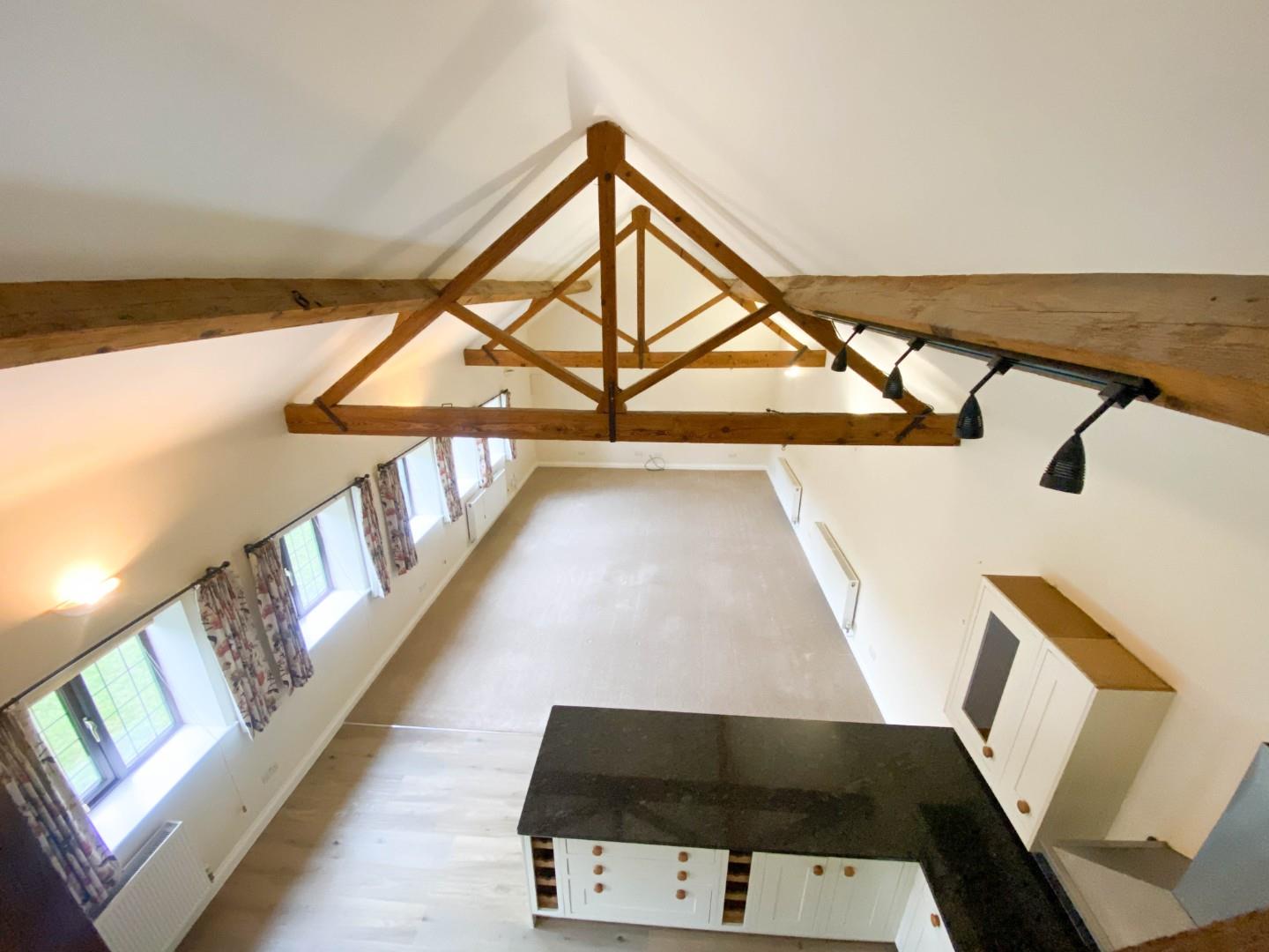 Upstairs, there is a galleried landing/study area which overlooks the main reception below. There is a good sized bedroom with adjoining loft storage room.