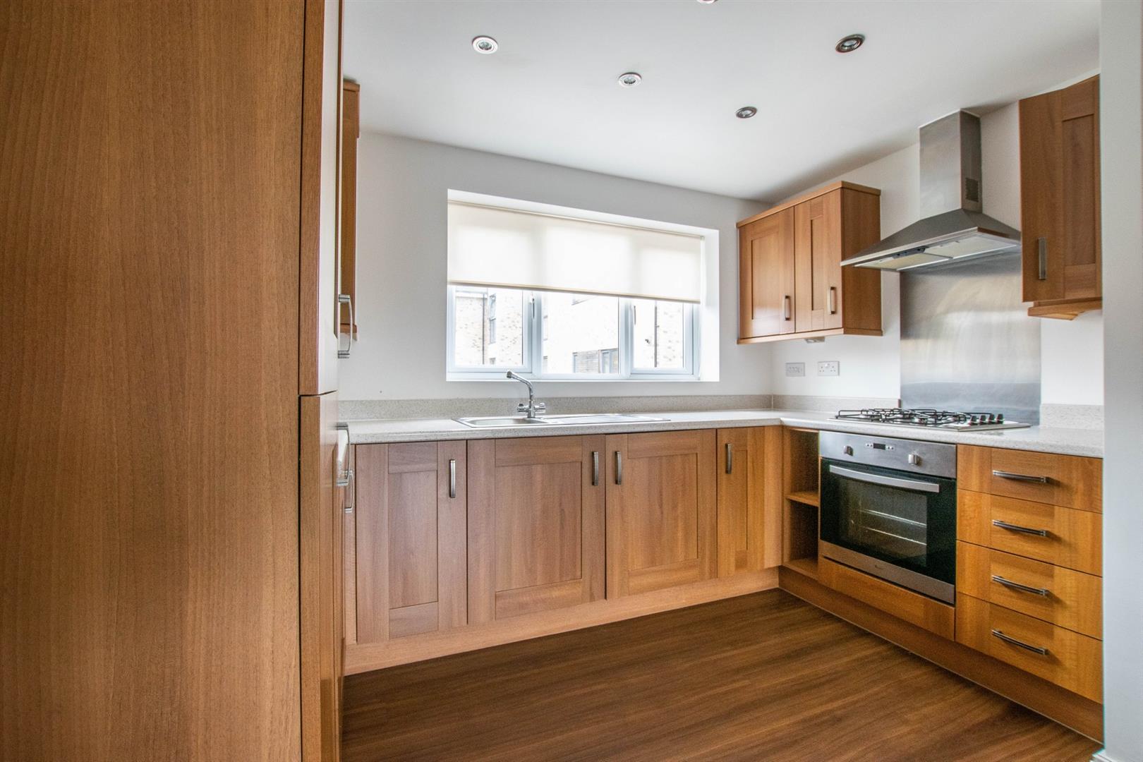 Accessed via a secure communal hallway, stairs lead to the first floor and the apartment which has an entrance hall with useful storage cupboard, open plan kitchen/living room with a range of cupboards and built in appliances including oven, hob and extractor, fridge/freezer and washing machine. The kitchen area has ceramic tiled floor with wood effect flooring in the living room which has a dual aspect and double doors to a balcony which overlooks a wildlife pond and landscaped area. There are two double bedrooms and a bathroom with tiled floor and shower over bath. There is also a heated towel rail. The property is in good decorative order with gas fired central heating and double glazing and outside is allocated parking for one car.